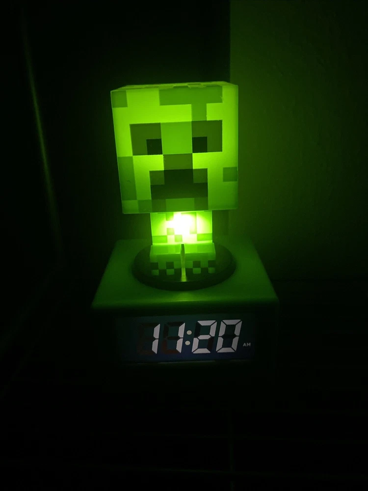 This clock is tested and working in great condition Wake up in style with this Paladone Minecraft Creep Alarm Clock. Featuring a digital display and battery-powered power source, this modern style clock is perfect for any room in your home. The green color and Minecraft theme make it a great addition to any gaming enthusiast's collection. With an alarm feature and made of durable plastic, this clock is not only functional but also a great decorative piece. Whether you place it in your bedroom, living room, home office/study, or gameroom, it will add a touch of cartoons & characters to your space. Get your hands on this Paladone Minecraft Creep Alarm Clock and never be late again!
