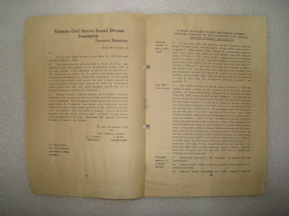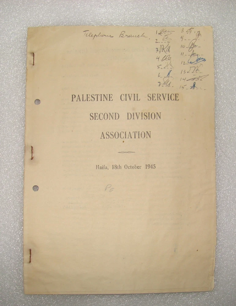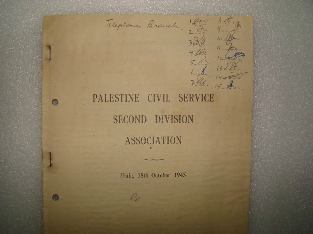 Palestine Civil Service Association 2nd Division Letter 1945 British Government for condition see pictures