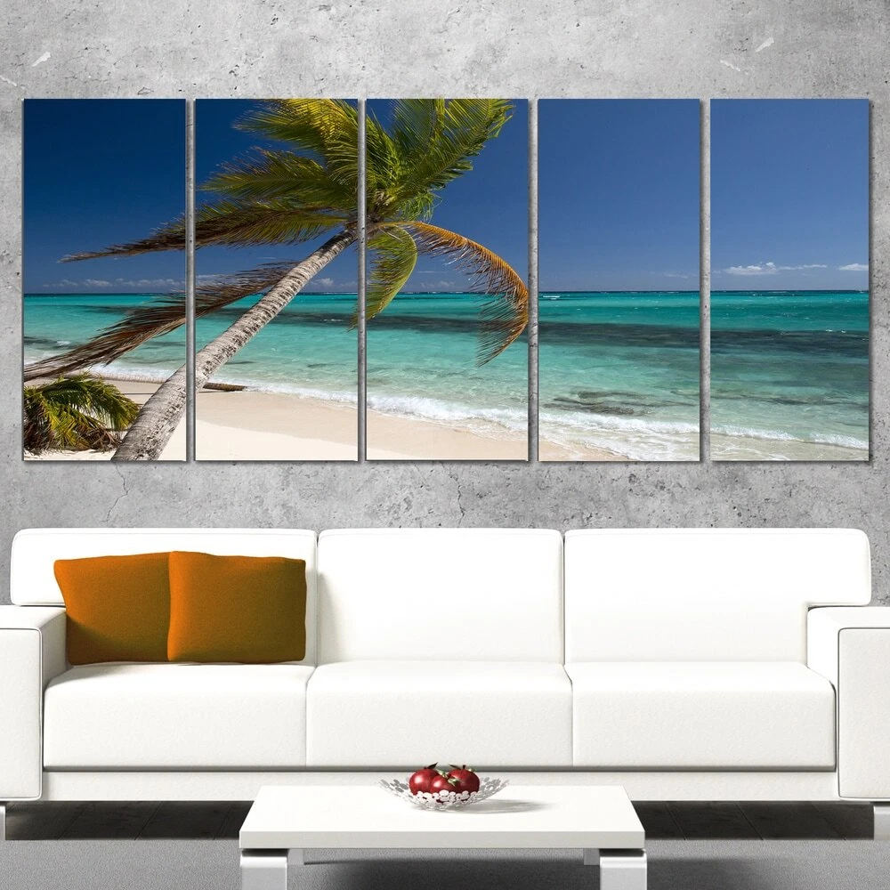This beautiful Sea & Shore Canvas Art is printed using the highest quality fade resistant ink on canvas. Every one of our fine art giclee canvas prints is printed on premium quality cotton canvas, using the finest quality inks which will not fade over time. Each giclee print is stretched tightly over a 1 inch wood sub frame ensuring the canvas is taught and does not buckle. This canvas art print is gallery-wrapped (the design continues on the sides) , giving it a real art gallery feel. All of our canvas prints are carefully packaged with plastic protection, fragile labeling and sturdy boxes to ensure a safe delivery. Every canvas print arrives ready to hang on the wall, with the hanging kits includedPeriod: ContemporaryOrientation: HorizontalSubject: Sea & Shore, Photography, Free Shipping Over $49.99* Details Palm Bent to Picturesque Seashore - Modern Seascape Canvas Artwork Print Product Description: This beautiful Sea & Shore Canvas Art is printed using the highest quality fade resistant ink on canvas. Every one of our fine art giclee canvas prints is printed on premium quality cotton canvas, using the finest quality inks which will not fade over time. Each giclee print is stretched tightly over a 1 inch wood sub frame ensuring the canvas is taught and does not buckle. This canvas art print is gallery-wrapped (the design continues on the sides) , giving it a real art gallery feel. All of our canvas prints are carefully packaged with plastic protection, fragile labeling and sturdy boxes to ensure a safe delivery. Every canvas print arrives ready to hang on the wall, with the hanging kits included PeriodContemporary OrientationHorizontal SubjectSea & Shore, Photography, Decorative TypeCanvas Art, Fine Art, Fine Art Giclee, Print, Wrapped MaterialCanvas, Cotton, Wood StylePhotography, Matching Set, Modern, Decorative, Horizontal Number of Pieces4+ FramedFramed SizeOversized ColorMulti Factory sealed boxes cannot be returned if opened.