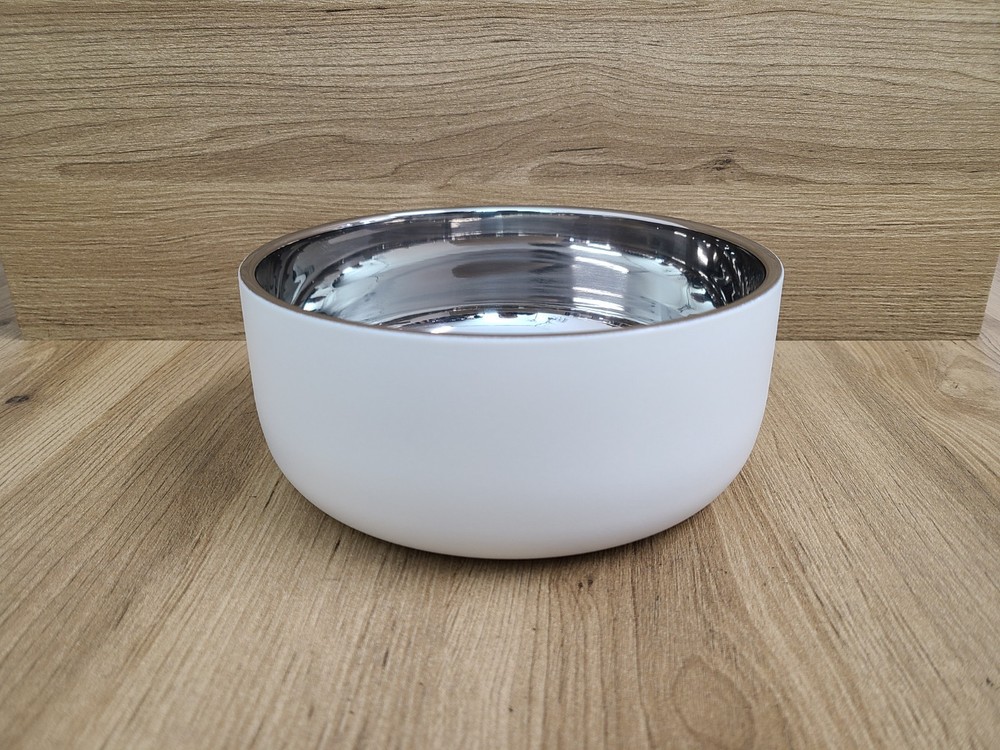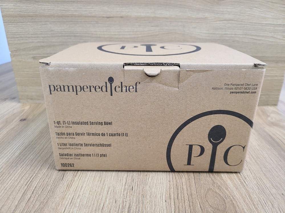Pampered Chef 1 Quart Insulated White Serving Bowl & Clear Lid 100262 - 20C Some minor scrapping on the metal inside. Let me know if your have any questions