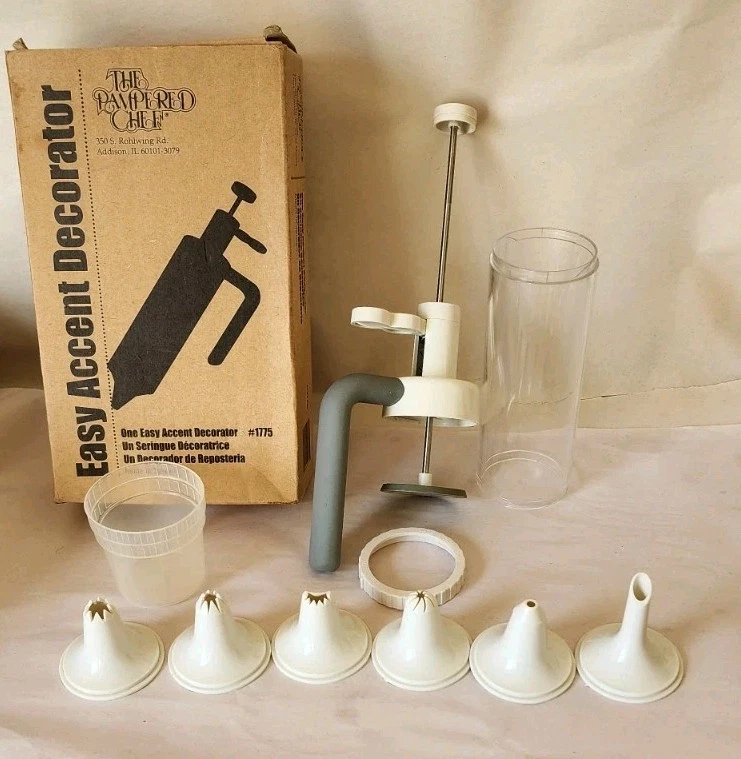 The Pampered Chef 8-piece Mixed Item Lot includes a variety of kitchen gadgets and tools in colorful, multicolor designs. Made from mixed materials, these items are a combination of new and lightly used pieces that have been pampered and cared for by the original owners. Perfect for enhancing your culinary experience, this collection offers a range of tools to help you cook up delicious meals with ease. -59"x49" zip up & carry black/white paisley hot pink trim cushioned picnic blanket. Open, not used -BBQ Skewer set #2701. New In bag -Ice cream sandwich maker. New. #2485 -Make & Take mason jar carrier. New. #1438 -9" baking tin. Lightly Used -Daisy Dessert plates (set of 4) New. #2818 -Infusion water bottle. New. #1287 -One easy accent decorator. Lightly used #1775 Most have original packaging. Boxes show slight wear.