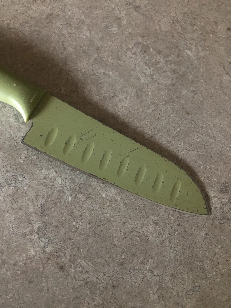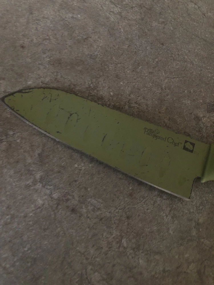 Pampered Chef Color Coated Santoku Knife GUC shows wear. No outer protective cover. Check out our other auctions. We combine shipping on multiple purchases IF ABLE TO. Please ask prior to bidding if an item(s) can be combined. As always, all my items come from my pet & smoke free home. I ship all items with care. Payment is due within 4 days of auction ending date . **Please note, I can no longer ship to APO/FPO/AA addresses** I only ship within the United States.
