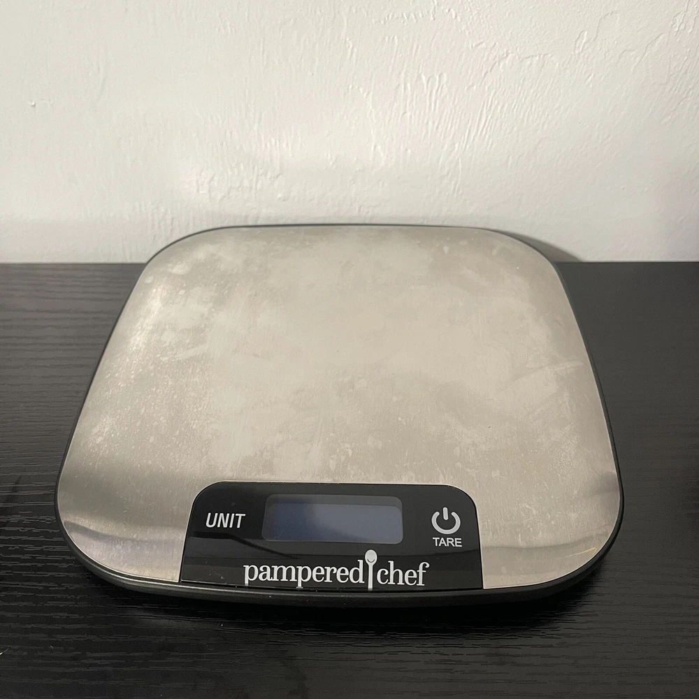 Pampered Chef electronic scale, fantastic condition- Like new No box, lightly used - no scratches dents or dings. Screen displays perfectly & scale works & is accurate. Scale can measure up to 11lbs Any other questions please feel free to message me, thank you!