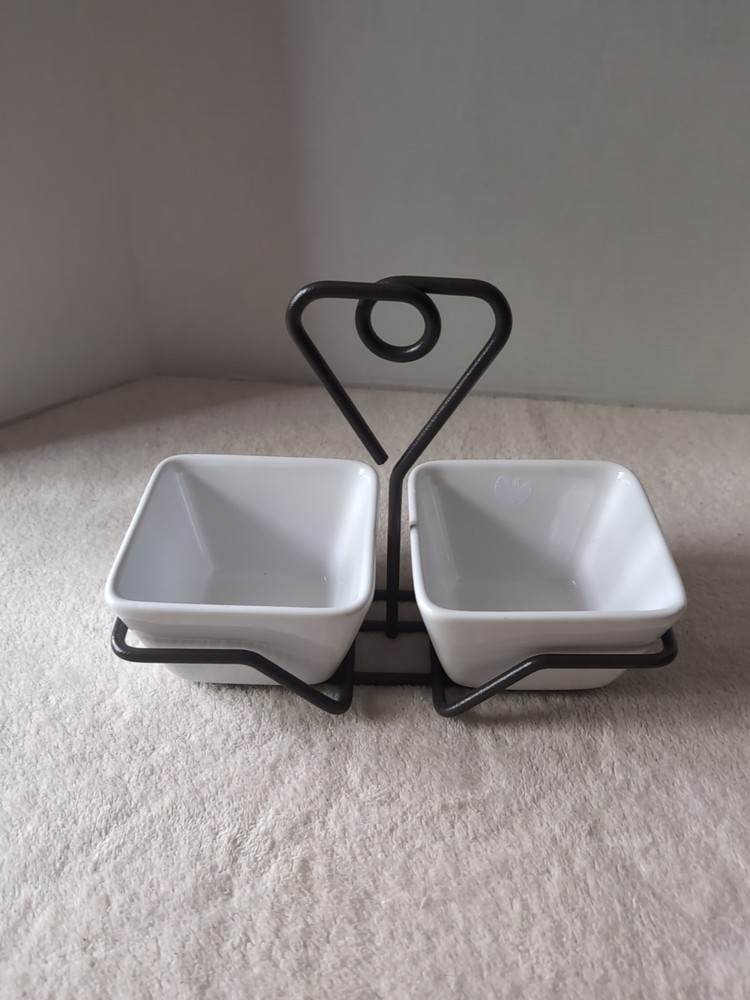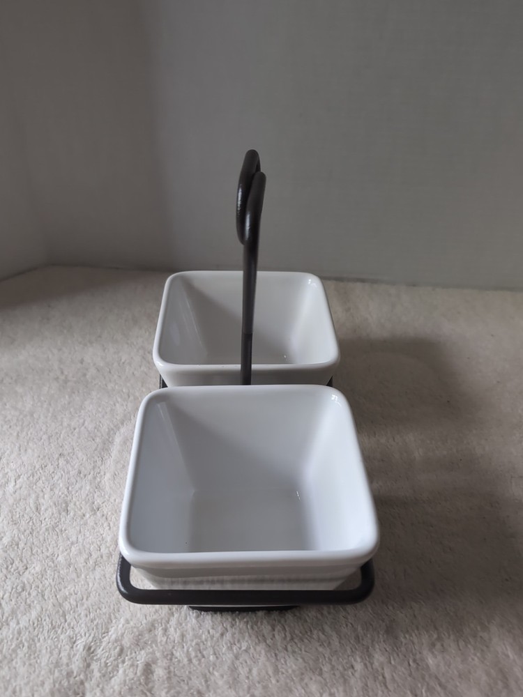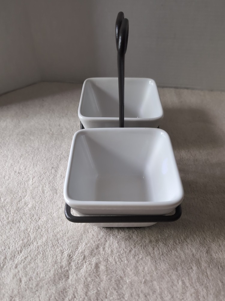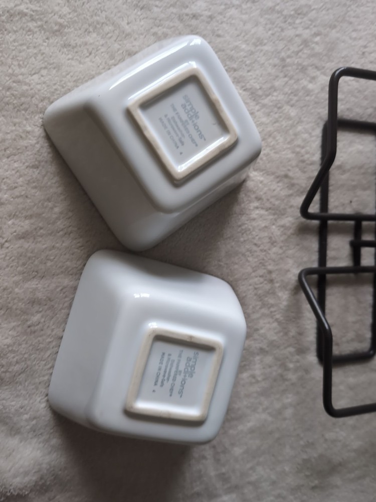 Pampered Chef SIMPLE ADDITIONS White Square Condiment Bowls w/Caddy