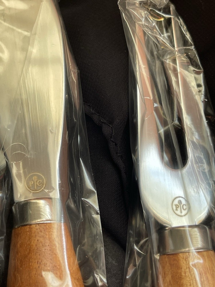 Pampered chef fork and spreader set wood handle New Sealed Original Box Set. Condition is New. Shipped with USPS Ground Advantage.