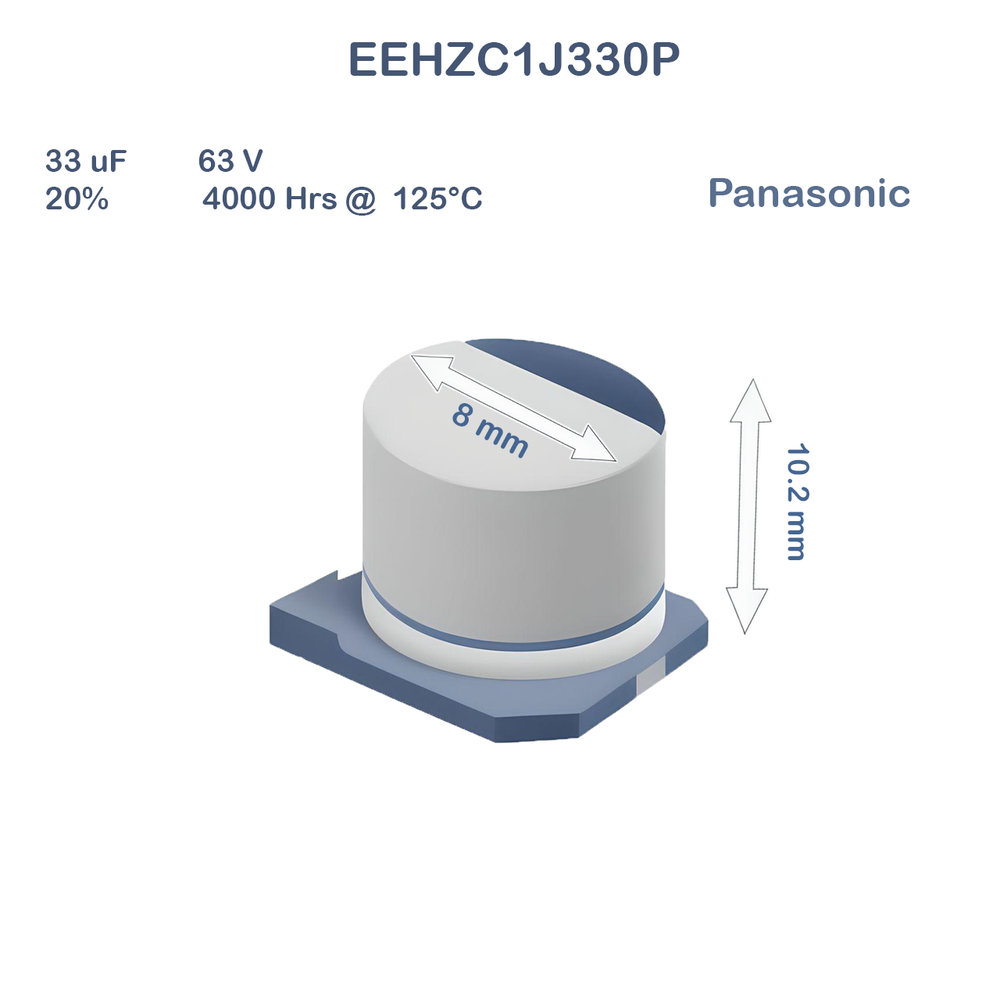 Store Seller Profile Feedbacks Contact Capacitors Aluminum Electrolytic Capacitors Aluminum Electrolytic Capactiors - SMD-SMT close EEHZC1J330P Panasonic 33uF 63V 8x10.2 Aluminum Organic Polymer Capacitor SMD 4000h 125C Ready to Ship Ask a Question 30-Day Return Description Specifications Shipping & Return Policy Disclaimer New Reel of 500PCS - EEHZC1J330P Panasonic 33uF 63V 8x10.2 Aluminum Organic Polymer Capacitor SMD 4000h 125C Specification Capacitance 33 µF Rated (DC) Voltage (URdc) 63 V Ripple Current 110 mA Positive Tolerance 20 % Size Code 3333 ESR 40 mΩ Polarity POLARIZED Negative Tolerance 20 % Mounting Feature SURFACE MOUNT Dielectric Material ALUMINUM (SOLID POLYMER) Capacitor Type ALUMINUM ELECTROLYTIC CAPACITOR Additional Feature ESR IS MEASURED AT 100 KHZ Leakage Current 20.79 µA Tan Delta 0.08 Reference Standard AEC-Q200 Operating Temperature-Max 125 °C Operating Temperature-Min -55 °C Number of Terminals 2 Package Shape CYLINDRICAL PACKAGE Package Style SMT Packing Method TR, EMBOSSED, 15 INCH Surface Mount YES Terminal Shape FLAT Height 10.2 mm Length 8.3 mm Width 8.3 mm Manufacturer Entity PANASONIC CORP Package Description CHIP Manufacturer Panasonic Shipping Policy Our go-to options for small to medium items are USPS Ground Advantage and USPS Priority Mail, known for their reliable tracking and peace of mind. Smaller items might qualify for USPS First Class Mail. Contact us to discuss this option before purchasing. Note: This method is less recommended due to the potential for delays. Return Policy We offer a 30-day return policy, no questions asked. If you choose to provide a reason for the return, it will assist us in improving and fix the issue. Packaging Our items are packaged according to their needs—some in ESD bags with pins secured in protective sponge, others in foam-enclosed boxes. For larger quantities, options include broken tubes for transistors or cartons. We welcome your suggestions for packaging preferences. Sofitrek Product Disclaimer Nature of Goods: All products offered by Sofitrek are surplus items. These products may originate from older batches, series, or have earlier date codes compared to those currently provided by the original manufacturers or their authorized dealers. Non-Affiliation: Sofitrek operates independently and is not an authorized distributor, nor is it affiliated or associated with the manufacturers of the products sold. Consequently, Sofitrek does not represent the manufacturers of these products in any capacity. Exclusion of Manufacturer's Warranty: Since Sofitrek is not an authorized distributor, the original manufacturer's warranties are explicitly not applicable to the products sold. This includes any implied warranties of merchantability or fitness for a particular purpose. Firmware and Software: Some products may include pre-installed firmware or software. However, Sofitrek does not guarantee the presence, compatibility, or the revision level of such firmware or software as suitable for your specific application. Furthermore, Sofitrek expressly disclaims any representation regarding your right or ability to download, obtain, or install any firmware or software for the products from any source, including the original manufacturers or their distributors. Limitation of Liability: Sofitrek shall not be held liable for any form of damages—direct, indirect, incidental, consequential, or otherwise—arising from the use, misuse, or inability to use any product sold. This includes, but is not limited to, damages for loss of profits, goodwill, use, data, or other intangible losses. The buyer assumes all responsibility for the safe and lawful use of the product and agrees to indemnify and hold harmless Sofitrek against any claims, liabilities, or expenses related to the product's use. Compliance and Responsibility: The buyer is solely responsible for adhering to all terms of any End-User License Agreement or similar documentation related to the products, particularly concerning the obtaining, installation, and use of firmware or software. Severability: If any provision of this disclaimer is found to be invalid or unenforceable, the remaining provisions shall continue to be in full force and effect. By purchasing from Sofitrek, the buyer acknowledges having read, understood, and agreed to this disclaimer in its entirety. Links eBay Shop Feedbacks Contact Us © Sofitrek