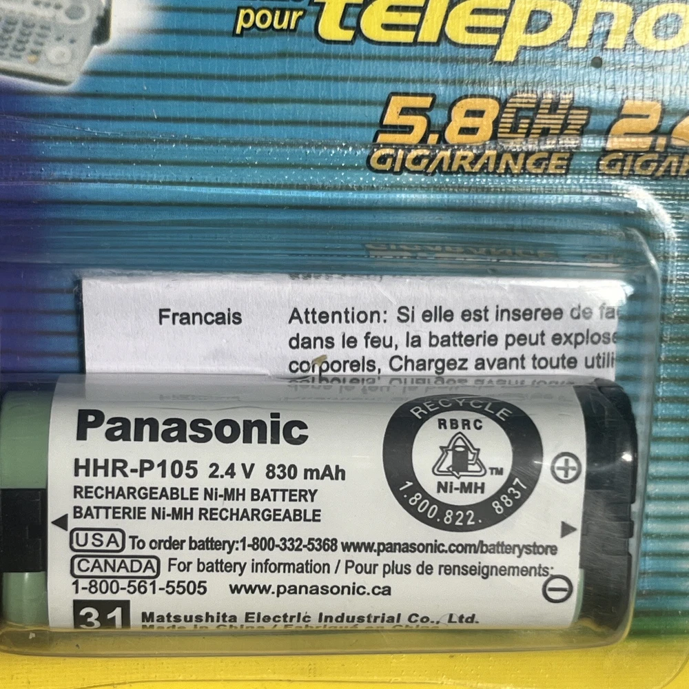 Panasonic HHR-P105 NIMH Rechargeable Battery 2.4V 840mAh For Cordless Phone New in box