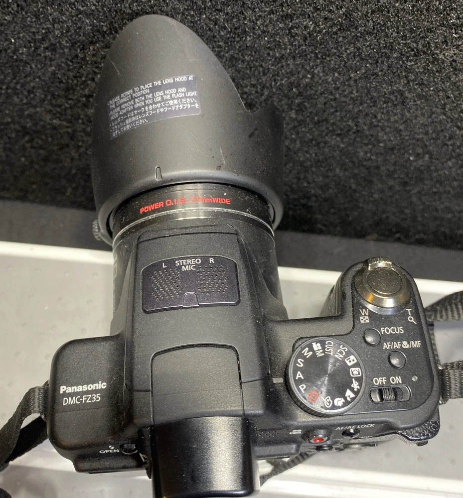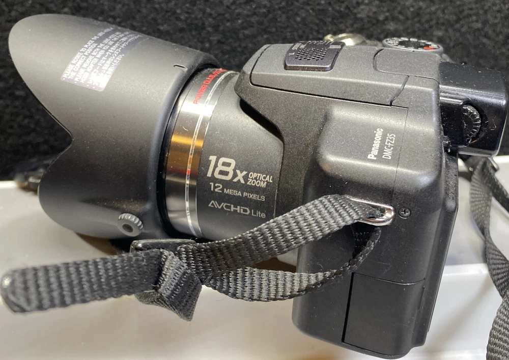 Capture life's precious moments with this Panasonic Lumix DMC-FZ35 digital camera. With a maximum resolution of 12.1 MP and an 18x optical zoom, this bridge-type camera in black color is perfect for photography enthusiasts. It features red-eye reduction, built-in speaker, CMOS sensor, built-in flash, HD video, auto focus, tripod thread, viewfinder, and auto power save. This camera is ideal for those who are into photography and videography. It is a reliable and high-quality device that allows you to capture stunning images and videos. Whether you're a beginner or a professional, the Panasonic Lumix DMC-FZ35 is a great choice for anyone who wants to take their photography skills to the next level. Condition: Item is pre-owned. Tested &Working. Show signs of scuffs/wear/scratches from previous usage. Does not come with retail packaging, You get exactly what you see in pictures. Please see pictures for more details