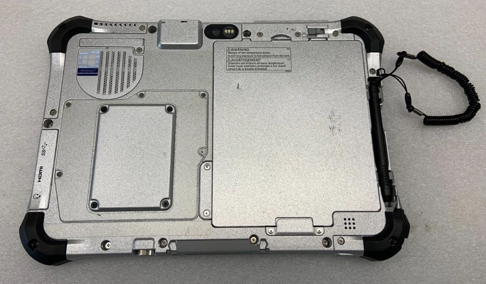 Operating System: Windows 10 Pro SSD Capacity: 256 GB Processor Speed: 2.60 GHz Maximum Resolution: 1920 x 1200 Model: Panasonic Toughpad FZG1 Storage Type: SSD (Solid State Drive) GPU: Intel HD Graphics 620 Type: Toughpad Processor: Intel Core i5 7th Gen. Brand: Panasonic Screen Size: 10 in Features: 10/100 LAN Card, Bluetooth, Built-in Microphone, Built-in Webcam, HDMI, USB 3.0, Dual Touch, Webcam