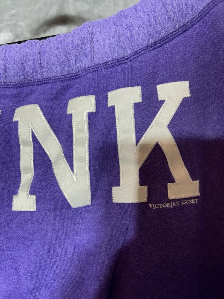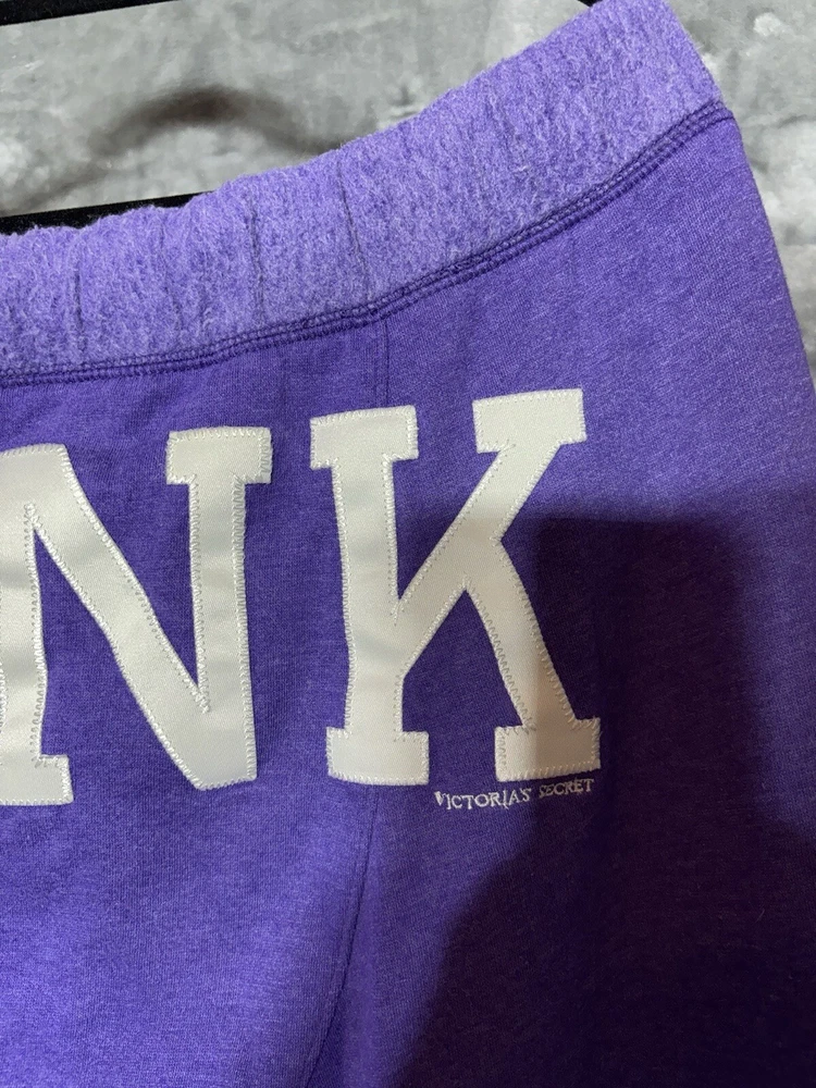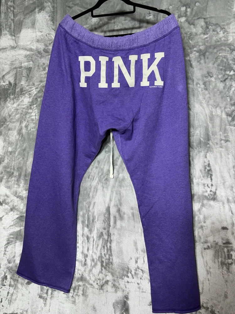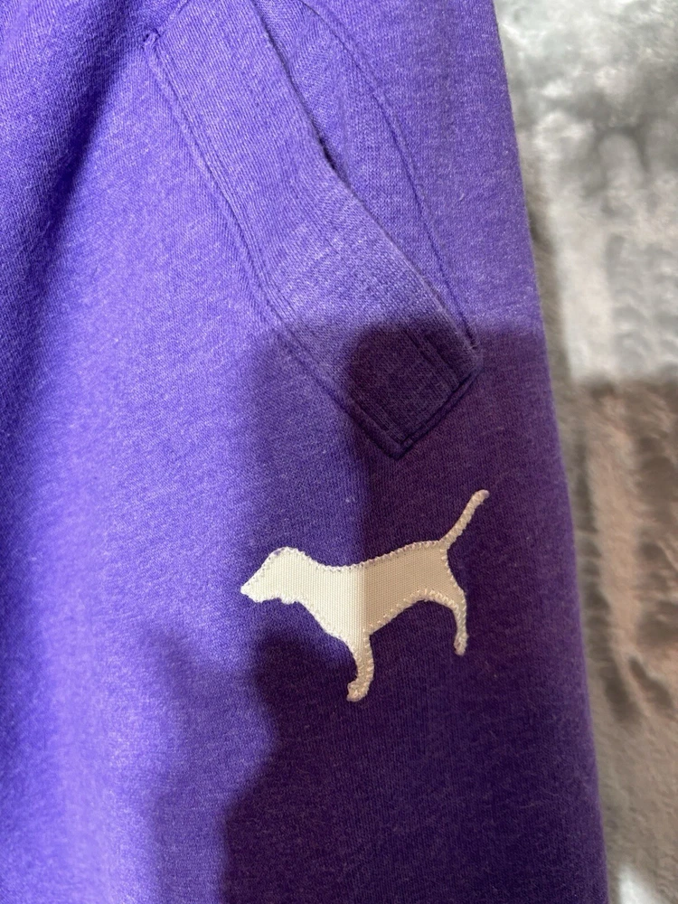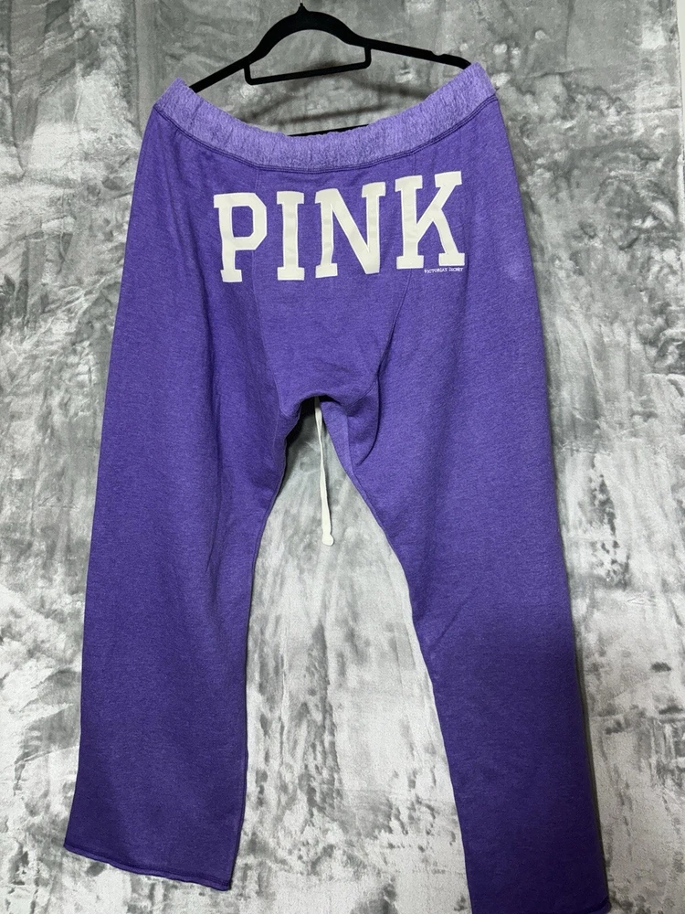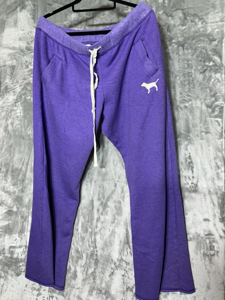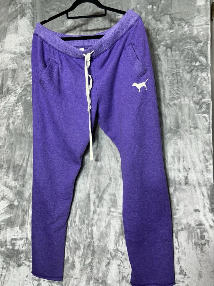 Elevate your casual style with these cozy Victorias Secret PINK Ivy fleece sweatpants. What a great way to have maximum comfort in these 60/cotton, 40 polyester pants. The pants are fleece lined, oversized and provide comfort with an adjustable waist and pockets. The wide-leg jogger pants are perfect for gym & training, walking, school, driving, yoga, or fishing. The drawstring closure and solid purple color make them versatile and suitable for travel, activewear, casual or workwear. The pants are made of polyester and cotton, and are machine washable. The PINK LOGO IS SEWN ON THE BACK. Inseam measures 32” long, waist is 37” around. These pants are new without tags. Measurements are approximate.