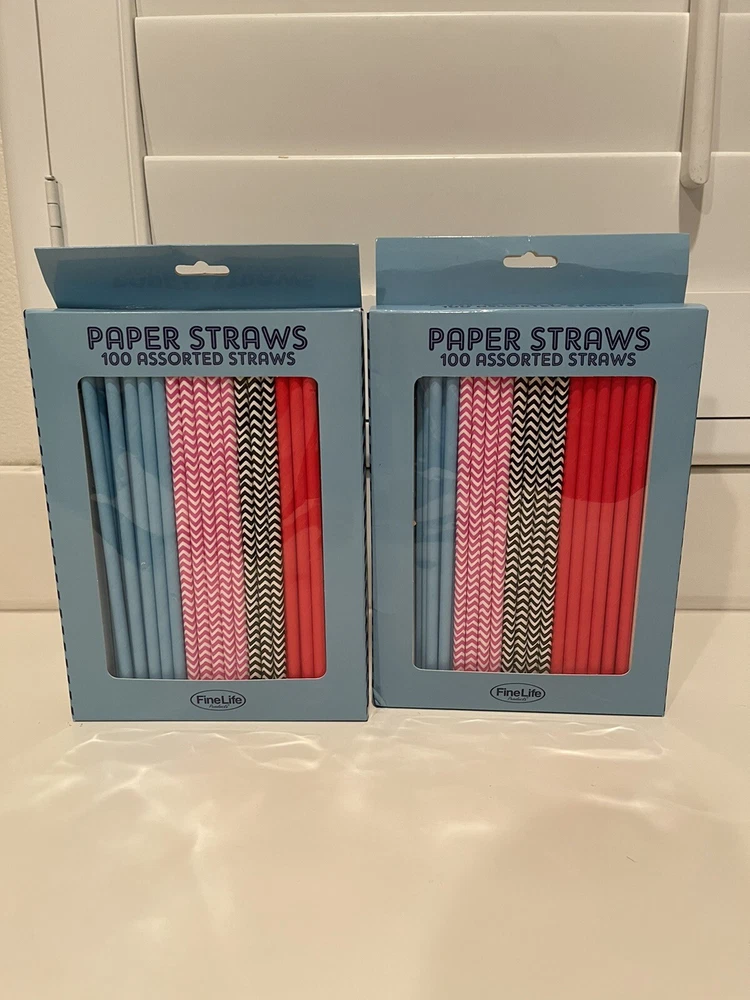 New 2 Boxes Of 100 Paper Assorted Straws 7 3/4” each-Total 200 straws NIB. Please message me with any questions. Thank you BNN