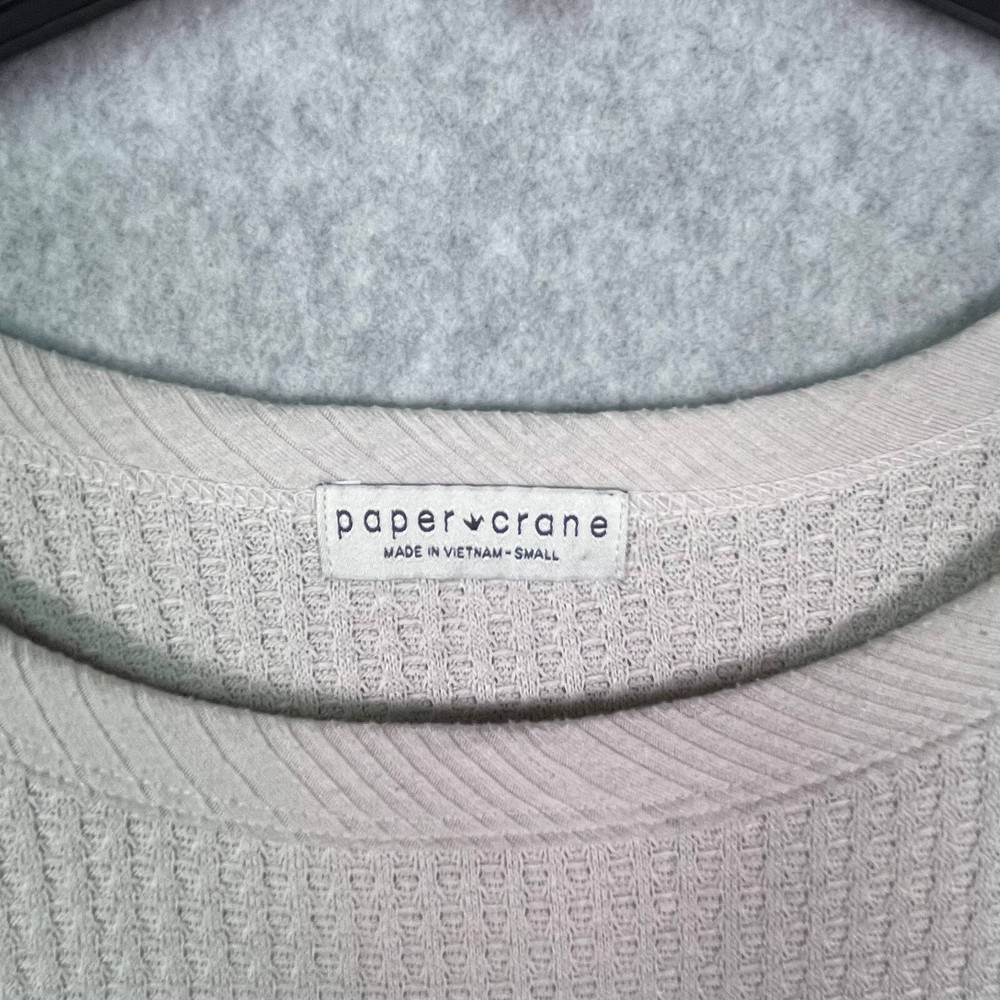 Paper Crane Top Women's Small Beige Cold Shoulder Long Sleeve Boho Chic Pullover Trendy Item Description This Paper Crane women's top in size Small is a lightweight and stylish option featuring trendy cold shoulder cut-outs, a soft beige color, and long sleeves. With a comfortable pullover design and boho chic vibe, it’s perfect for festivals, weekend outings, or casual layering. Made from a soft, stretchy fabric (check tag to confirm material), this flattering top is both fashionable and easy to wear year-round. Features : Brand: Paper Crane Gender: Women Type: Top Size: Small Color: Beige Chest Size: 42'' Thanks for looking! Feel free to message with any question .