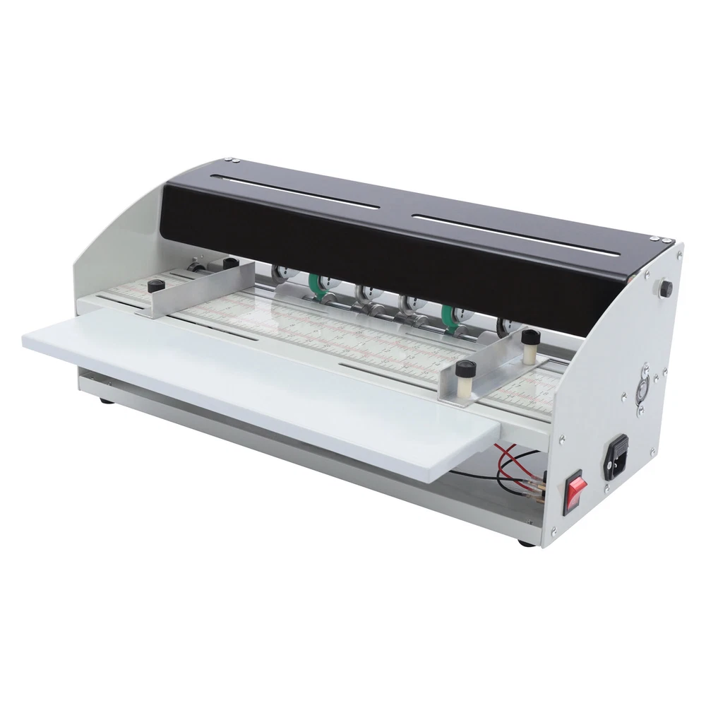 Description A good creasing machine can make your creasing work twice as effective. This electric creasing machine uses round creasing technology, so the creases are clear and full and the paper is not broken. The compact structure, small size, and easy operation make it very easy to use. With adjustable width and unlimited length, it can meet your different creasing needs at once. Specification Model: QY-H500 Material: Mechanical Steel Color: Silver Max. Feed Width: 460mm/18inch Creasing Mode: Round Creasing Technology, Longitudinal Creasing, Unlimited Length Number of Paper Creasing Wheels: 2 Groups Number of Creasing Wheels: 2 Groups Dashed Knife Configuration: 1 Group Number of Slitting Knives: 1 Group Power Supply: 110V, 60Hz Package Size: 58.5*27*24.5cm/23.03*10.63*9.65in 💖High Quality & Fast Shipping~💖 Description A Good Creasing Machine Can Make Your Creasing Work Twice As Effective. This Electric Creasing Machine Uses Round Creasing Technology, so the Creases Are Clear and Full and the Paper Is Not Broken. the Compact Structure, Small Size, and Easy Operation Make It Very Easy to Use. with Adjustable Width and Unlimited Length, It Can Meet Your Different Creasing Needs at Once. Key Features Great Convenience: the Electric Creasing Machine Has the Advantages of Compact Structure, Small Size, and Easy Operation. It Makes Your Creasing Work Easy and Fast. High Efficiency : for Business Cards, Photos, Greeting Cards, Color Pages, Covers, Etc., It Can Finish One or More Folds at a Time, so It Greatly Improves the Working Efficiency. Wide Application : It Can Easily Adjust the Creasing Pressure and Creasing Position at Will. the Adjustable Creasing Width Is Designed to Meet the Needs of Different Papers. and You Can Freely Choose Single or Multiple Creasing Blades to Work. Good Performance : This Product Adopts Circular Creasing Technology. the Indentation Is Clear and Full, and the Paper Is Not Broken. the Custom-made Premium Paper Bearing Makes the Wheel Wobble Very Little, so Its Performance Is Guaranteed. Stable and Low-noise : It Adopts a Synchronous Belt Drive, Which Makes the Transmission More Stable. This Not Only Ensures the Accuracy of Indentation to a Certain Extent but Also Reduces Noise Making. Great Durability : It Adopts a Full Mechanical Steel Structure Thickened Wall Plate and Precision Thickened Spindle, so the Concentricity Is High and Not Easily Deformed. It Can Be Used for a Long Time. 3-in-1 Function : It Is Equipped with One Sawtooth Perforating Die, One Cutting Die, Two Rubber Rollers for Paper Pressing, and Two Creasing Dies, Which Can Achieve Single/Double Creasing, Cutting, and Dash Work. High Precision : It Adopts the Way of Paper Walking by Pressure Wheel, so the Paper Walking Is Not Shifted. This Effectively Avoids the Trouble Caused by the Misalignment of the Indentation. Easy to Disassemble : the Knife Holder Is Very Easy to Disassemble and Install and the Position Can Be Any Combination , so You Can Easily Disassemble It for Cleaning or Replacing Parts. Details Longer Tray Panel : Longer Pallet Can Increase the Smoothness of Long Paper Feeding , Which Is Suitable for More Paper Needs. Dotted Line Knife Holder : It Has a Dotted Line Knife Holder, and Can Also Cut the Dotted Line of the Document Ticket. It Can Be Said to Be Multi-purpose. Double Spiral Design : the New Double Spiral Design Makes the Knife Holder Fixed More Stable and Positioned More Precise ly, Thus Improving Working Accuracy and Safety. L-shaped Side Gauge Design : the Unique L-shaped Side Gauge Design Makes the Product Smooth and Non-jamming . It Cooperates with the Hand Screw (Cross) to Make the Adjustment of the Left and Right Positions More Convenient. Application It Is Suitable for Professional Services, Office, and Personal Users. It Can Be Used to Create Documents, Labels, Rotating Color Pages, Written Covers, Cards, Photos, Invitations, Menus, Envelopes, Tickets, Etc. Specification Model: Qy-h500 Material: Mechanical Steel Color: Silver Max Feed Width: 460mm/18inch Creasing Mode: Round Creasing Technology, Longitudinal Creasing, Unlimited Length Number of Paper Creasing Wheels: 2 Groups Number of Creasing Wheels: 2 Groups Dashed Knife Configuration: 1 Group Number of Slitting Knives: 1 Group Power Supply: 110v, 60hz Package Size: 58.5*27*24.5cm/23.03*10.63*9.65in Gross Weight: 10kg/22.05lbs Net Weight: 9.7kg/21.38lbs How to Use 1. Plug in the Correct Power Supply, Turn It on and See If the Machine Is Running Properly. the Socket Comes with a Spare Fuse. 2. Select Different Creasing Lines As Required. Use the Tool to Adjust the Position. the Center of the Creasing Wheel Should Be Right in the Center of the Creasing Groove. 3. Check the Scale According to the Paper Size and Indentation Position. 4. Adjust the Left and Right Side Gauges. 5. Place the Trial Paper. Turn on the Power and Push the Paper over the Creasing Wheel. Adjust the Pressure As Required. Pay Attention to the Thickness of the Paper. Too Much Pressure Affects the Life of the Motor. 6. When All Is Ready, Push the Paper into the Platen to Start Working. 7. Press the Dotted Line to Replace the Corresponding Indentation Wheel or Knife Holder Installed. Adjust Certain Pressure. A - Tool Holder Positioning Screw: Loosen the Screw, the Tool Holder Can Be Moved Left and Right to Achieve Different Sizes of Work B - Creasing Knife Depth Adjustment Screw: Adjusting the Screw Can Realize the Switching of Different Creasing Methods and Also the Depth Adjustment of the Creasing Line C - Creasing Slot Positioning Screw: Loosen the Screw, with the Tool Holder to Move Left and Right Package Included 1 * Electric Creasing Machine 1 * Power Cord Notes 1. Power Is Not Working: Check Whether the Power Cord Is Plugged in, Whether the Fuse Is Blown, and Whether the Socket Key Wiring Is Loose. 2. Turn on the Power, the Motor Does Not Rotate: Check Whether the Power Switch Is Energized, Whether the Motor Is Stuck, and Whether the Con