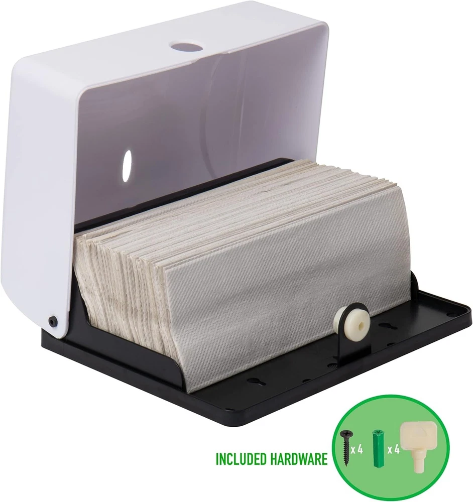 BRAND NEW Plastic Quick and Easy Installation: This paper towel holder comes with all the necessary hardware, making it a breeze to mount on any wall. It can be installed in minutes and is ready for immediate use Versatile Design: This towel dispenser holds C-Fold/Multifold paper towels measuring 9.25 inches wide (23.5 cm) Convenient and Practical: The press-in top button releases the front panel, enabling users to replenish paper towels with ease. The window in the center allows for easy monitoring of the paper towel levels, alerting you when a refill is required Effortless Maintenance: Cleaning the dispenser is effortless, with the outside surface requiring nothing more than a simple wipe down with your preferred bathroom or kitchen cleaning supplies or mild soap and water Perfect Size: Measuring 10.25 long x 3.75 wide x 8 inches high (26.04 x 9.53 x 20.32 centimeters), this paper towel dispenser is compact enough to fit seamlessly in any space while still providing ample storage for paper towels THANK YOU