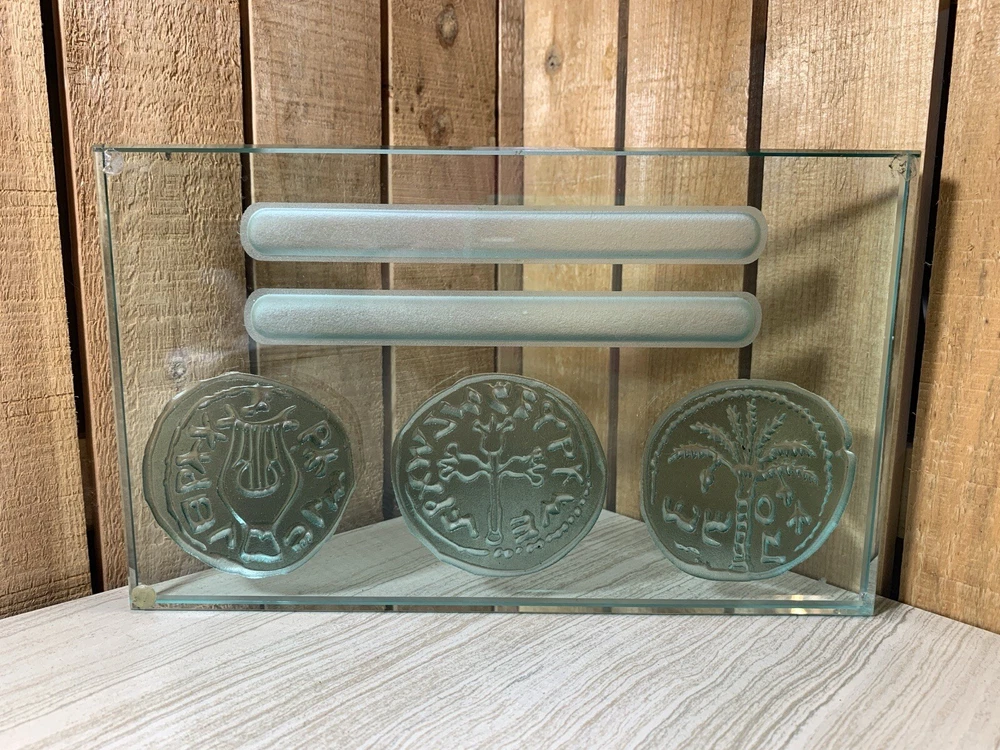 Heavy Clear Glass Paperweight Pen Holder with Embedded Coin Designs with Light Green Tinting. Approximately 9 3/4" x 6" x 5/8" and weighs 3 pounds. This is in very good used condition as seen in the photos. There are a few light scratches from normal use. Please see all photos as they are part of the description. We try to list as many details as possible, however some items are vintage and pre-owned so flaws are to be expected. We try to find out as much information as possible on each item we have available. On occasion we may make a mistake and appreciate your feedback.