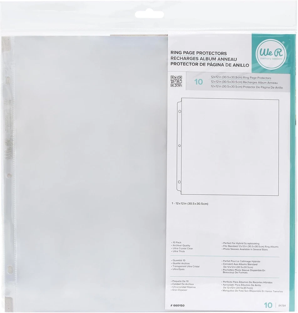 CRYSTAL CLEAR: Crystal-clear design provides optimal visibility and readability of enclosed documents. Durable construction resists tearing, creasing, and moisture damage, ensuring long-lasting protection. DURABLE: Reinforced binder holes for secure and hassle-free insertion into binders or folders. Acid-free and archival-safe materials to preserve documents without yellowing or degradation over time. VERSATILE: Mix and match any We R Memory Keepers page protector or photo sleeve with any standard 3-Ring Album. Suitable for storing various document types such as certificates, photographs, recipes, and artwork. EASY-TO-USE: Easy to load and remove pages for convenient organization and access. Ideal for office, school, home, and professional use, including presentations, reports, photo albums, and more. PART OF THE FAMILY: Pair the with the many other wonderful We R Memory Keepers products, including our 12x12 photo albums, and start making memories that will last a lifetime! Product Description We R Your Favorite Brand for Crafting For over 90 years, We R Makers (formerly WE R MEMORY KEEPERS) has been at the forefront of the crafting industry, celebrated for our unwavering commitment to innovation and creativity. Our journey began with a focus on quality and reliability, values that continue to define us today. In the past decade, we've embraced a broader mission, evolving into a dynamic community that caters to a wide range of creative passions. Scrapbooking Supplies We R Makers offers an extensive range of high-quality scrapbooking supplies designed to enhance creativity and preserve cherished memories. Our innovative products include unique paper trimmers, precision cutting tools, embossing folders, and various embellishments, catering to both beginners and seasoned scrapbookers. New Products At We R Makers, we pride ourselves on developing cutting-edge tools that simplify and enhance the crafting process. Our extensive product range includes everything from precision cutting tools and versatile punch boards to advanced die-cutting machines and heat tools. Cinch Products We R Maker Book Binding tools are essential for anyone passionate about creating beautifully crafted books, journals, and albums. Whether you are a beginner exploring the art of bookbinding or an experienced artisan, having the right tools is crucial for achieving high-quality results. Crop-A-Dile Using We R Makers scrapbooking punches, you can create beautiful borders, elegant accents, and custom embellishments that make your memories come alive. They are perfect for highlighting photos, framing journal entries, and adding decorative elements that reflect your unique style. Button Pressing Button press kits by We R Makers are designed for both hobbyists and professionals, featuring user-friendly machines that produce high-quality, durable buttons. These tools enable the creation of personalized buttons for various occasions, from promotional items and merchandise to unique fashion accessories and personalized gifts Jewelry Pressing We R Makers offers a revolutionary approach to jewelry creation with our state-of-the-art jewelry pressing tools. These kits provide everything needed to craft unique, personalized jewelry pieces, from custom charms to intricate pendants. Designed for both beginners and seasoned crafters, their tools are known for their durability, ease of use, and precision. Inspiration and Community We R Makers is more than a supplier of crafting tools; We R a vibrant community of crafters, artists, and DIY enthusiasts. Our social media channels, blog, and workshops are filled with ideas, tutorials, and inspiration to help you explore new creative horizons. We believe in the power of crafting