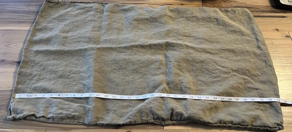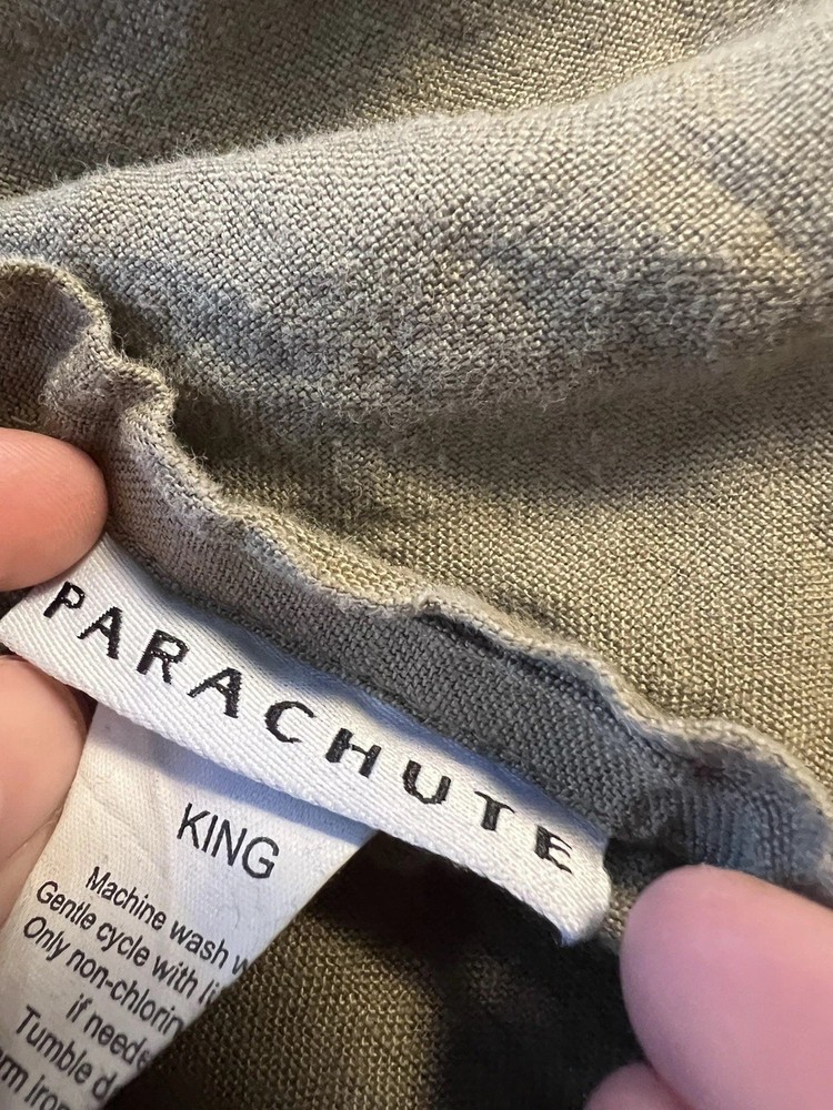 Set of two king-size linen pillowcases from Parachute Home in a muted olive / sage green tone. Made from 100% European linen with Parachute’s signature relaxed, lived-in texture. Details: • Brand: Parachute Home • Size: King • Quantity: 2 pillowcases • Material: 100% Linen • Color: Olive / Sage Green • Made in Portugal • Envelope closure (no zippers) Measurements (approx., laid flat): • Width: ~20” • Length: ~36” (King size; please reference measurements) Condition Notes: • Pre-owned, good condition • Linen shows natural wrinkling and texture • No holes or tears noted • Light signs of normal use consistent with linen • Freshly laundered prior to listing Please review all photos for color tone and texture — linen naturally varies.