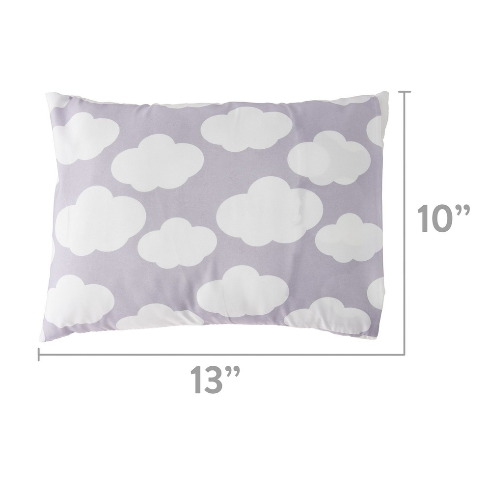 The Parent's Choice Toddler Pillow with Removable Pillowcase features a cloud print design. The pillow cover is sized at 10*13 inches and comes in a white color. This product is ideal for toddlers and offers a comfortable sleeping experience.