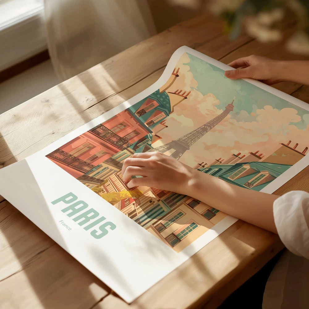 Paris Poster Vintage Travel Poster Retro Paris Travel Poster Gift Paris Wall Art Vintage Poster Paris Travel Poster Material: Premium luster photo paper Print type: Inkjet printing One side printed + The finish provides the highest possible resolution and color saturation + Lasts up to 200 years in color and 400 years in black-and-white + Printed on high-quality resin-coated photo base paper medium + Posters can be hung with double-sided tape, tacks, or framed + Hand washing with a gentle cry cloth is recommended for extended durability I will hand select the best choice of paper for your chosen design to ensure top quality results for a beautiful, bright and luxurious print. All prints are sealed in cellophane slips for protection during transportation, and are shipped in a protective cardboard envelope.