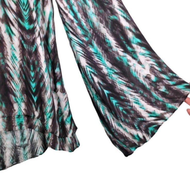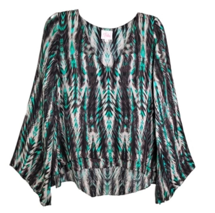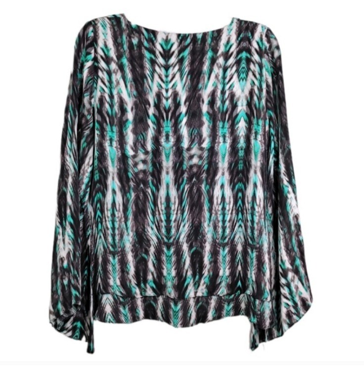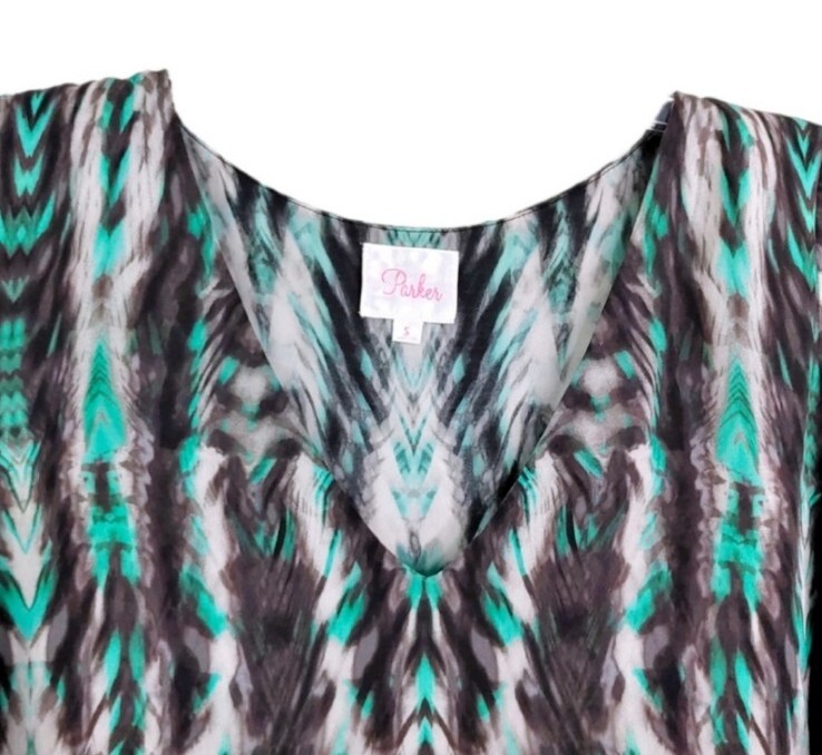 Parker Silk Abstract Graphic Print Trumpet Sleeve Blouse Women's Size Small S. This gorgeous Parker blouse is in great pre-loved condition! It is 100% silk and has a beautiful abstract print and flared sleeves. Bust: 36" Length: 26"