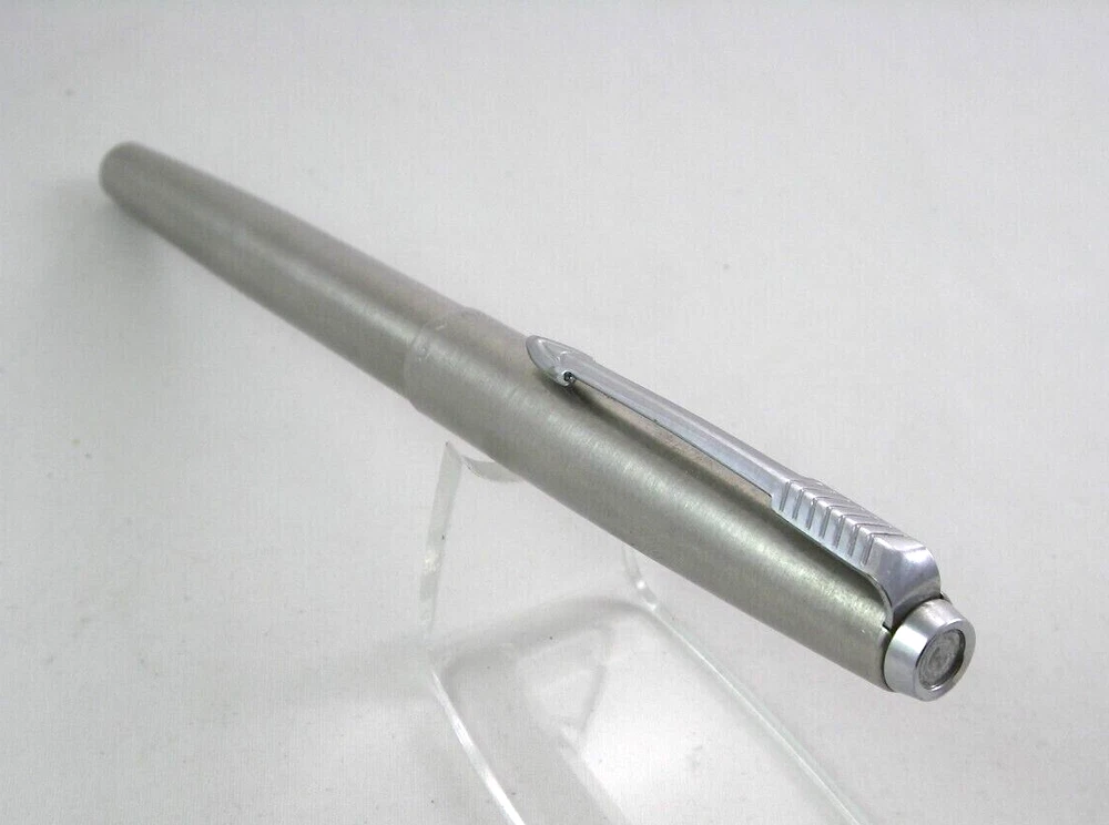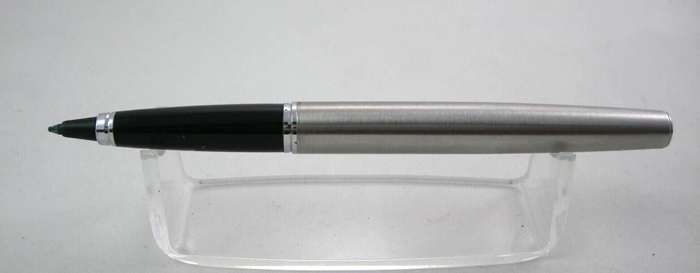 Parker Steel rollerball pen Made in England (K) very good condition, fully working condition *all parts are original *every pen is cleaned and renovated *there is last testing before sending Please view all pictures for details. ATTENTION: Dear Customers, you will receive exactly the same item which you see on the pictures, not similar or other. When you receive the product, please leave a feedback for us. Your feedback is always important to us. Please feel free to contact us before leaving a negative feedback. If there is a problem, we will help you to solve it. All deliveries are with priority tracking airmail between 15 and 23 business days. DHL Express, Fedex and EMS couriers are available with extra charge shipping cost. See Photo!! Thank you!