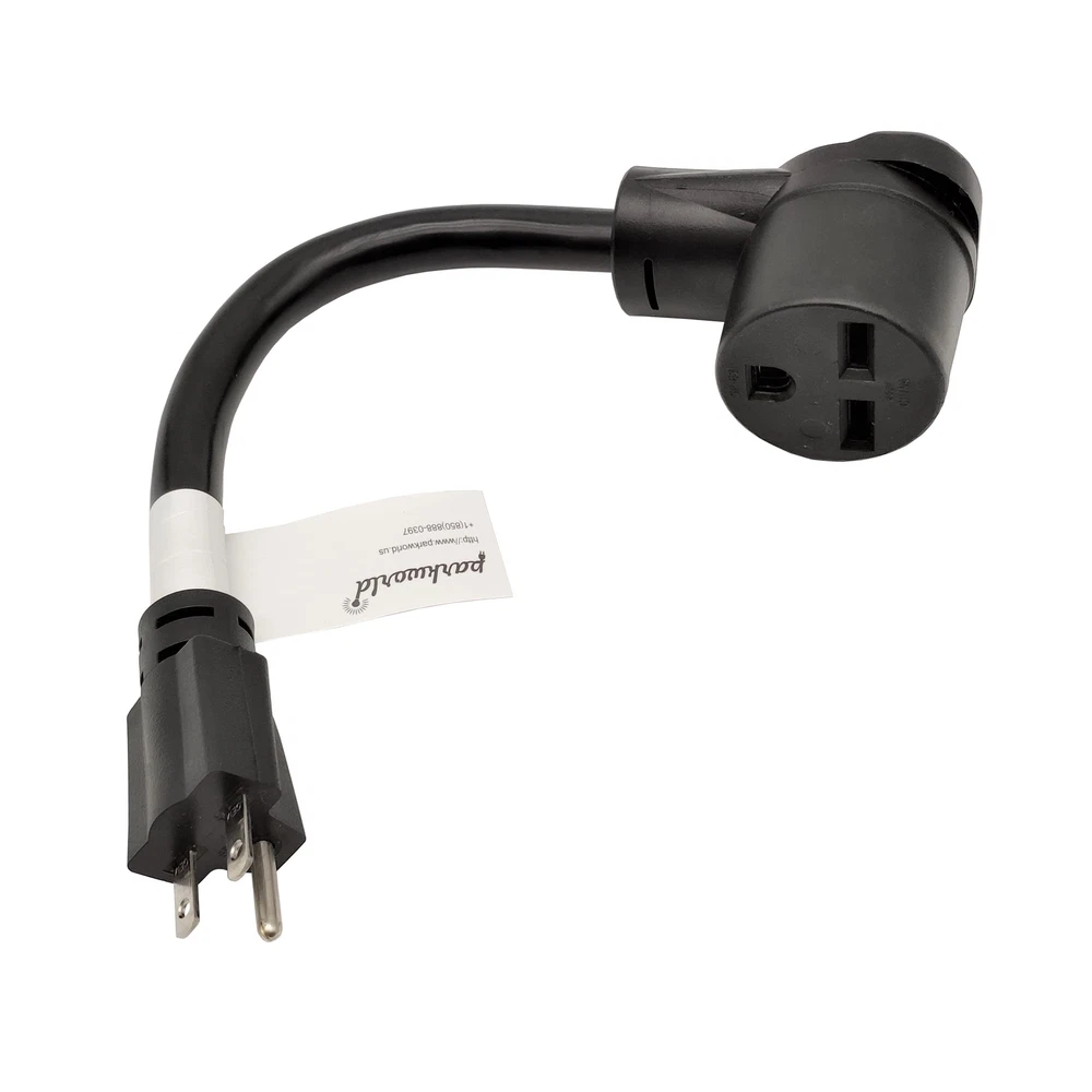 Parkworld 61360 NEMA 6-15P to 6-30R, A/C 15A to Welder 30A Adapter Cord, 15A 250V 1 Feet 100% copper wire conductor inside Heavy-duty power adapter cord for welder. Kitchen or A/C 15 AMP 250 Volt 3-prong NEMA 6-15 male plug. Welder 30 AMP 3-prong 6-30R female right angle connector. Molded with electroplate copper terminal in order to avoid surface oxidation effectively. Used 10 AWG copper inner wire, support max 30 Amp overload. Length : 12 inch (1 feet). Color : Black 6-15P to 6-30R 250V 15A. For use when 30 AMP Welding extension cord need to plug into NEMA 6-15 outlet to get power. You can get the cord or adapter in your need. We focus on producing power cord and molding NEMA plug or connector. Most of generally use NEMA plugs and receptacles we can manufacture with PVC cable. We have UL approved for all PVC wire in UL 62 standard, and also have UL or ETL approved for most of connectors in UL 817 standard. Please let us know your demand by send message to us. You can explain what plug with what receptacle and what length you want. Don't worry about the amount in your need, even you only need special one that you can not find it in retail. Waiting is the only thing we hope you can understanding. Because It will take several weeks for producing in factory, and the other 1~2 weeks for shipping from China to USA. Send your need to us by message now.