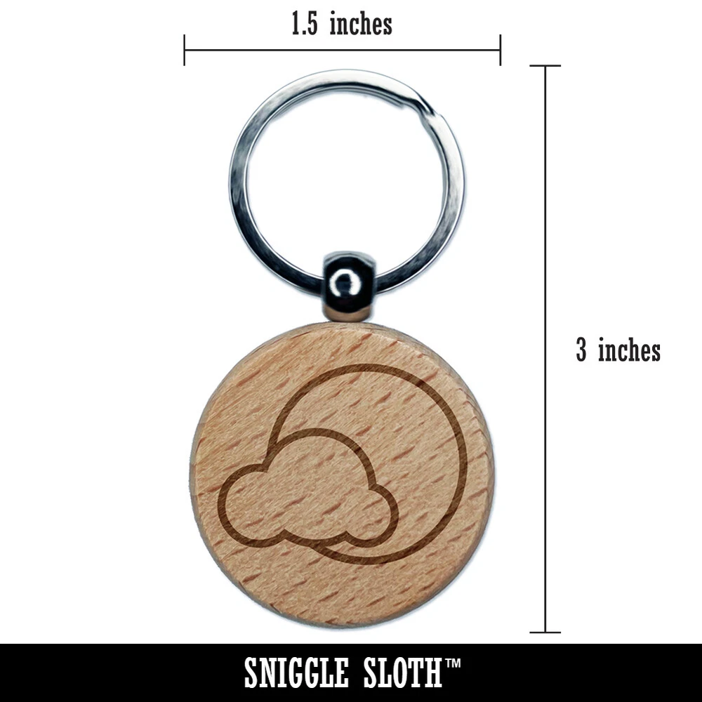 Partly Cloudy Weather Engraved Wood Round Keychain Tag Charm