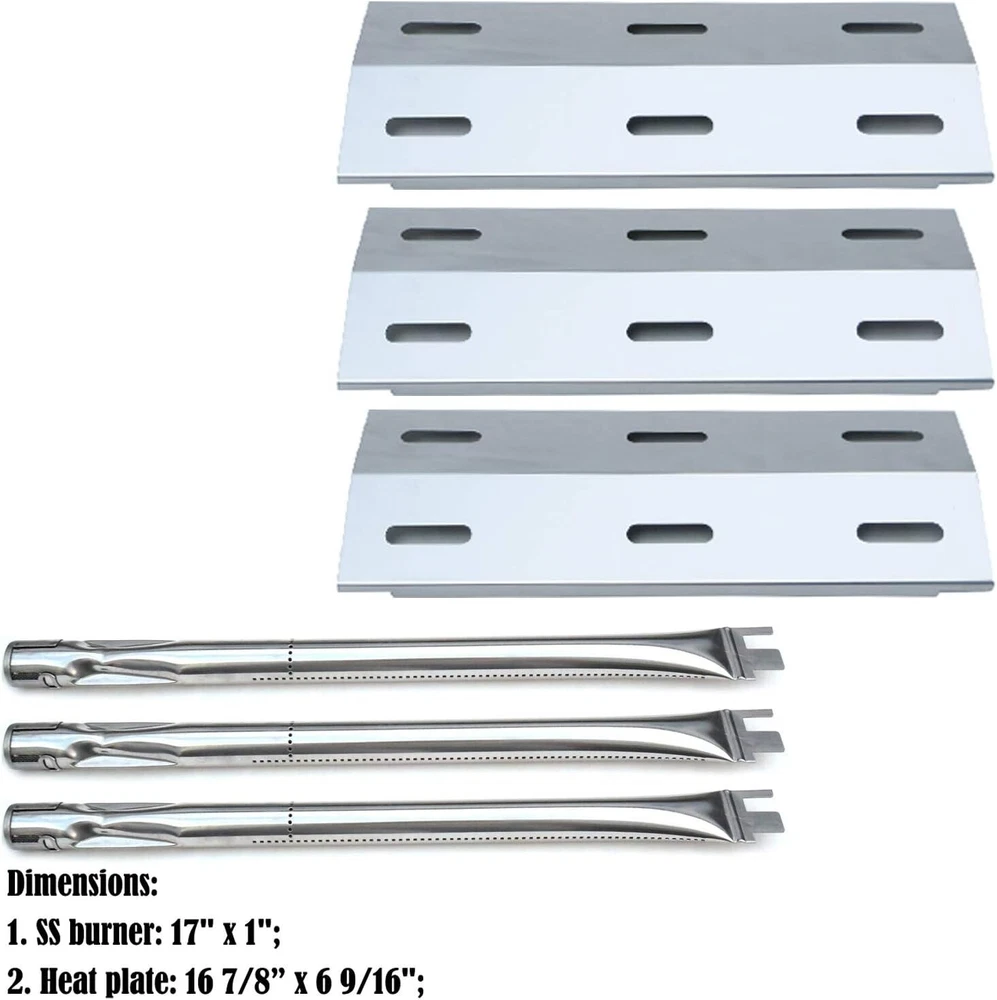 Direct store Parts Kit DG103 Replacement for Ducane Gas Barbecue Grill 30400040,3200,3400 Grill Burners & Heat Plates (Stainless Steel Burner + Stainless Steel Heat Plate) ✅ Special Notes for this item: If you are looking for parts, the BRAND and MODEL No.# listed below are just for your reference. Please Kindly check again for the SIZE and MODEL of your original parts before purchasing. if you have any problem with the item, please feel free to contact us 7 * 24 Hours, We will reply to you within 24 hours and give you a satisfactory solution. ✅ Replacement for Ducane 3 Burner Gas Grill Model 30400040, 3200 ,3400 Gas Grill; ✅ Replaces Part Numbers: 30500702, 30500603, 305000047, 30500094, DUCHD1, 30500048, 30500602, DUCHP1 ✅ Burner Dimensions: 17" x 1" ; Burner Material: Stainless Steel; Heat Tent Dimensions: 16 7/8” x 6 9/16" ; Heat Plate Material: Stainless Steel ✅ Direct store Parts Kit includes 3 Stainless Steel burners and 3 Stainless Steel heat plates; ✅ Easy to clean: Smooth surface, non-stick, Heavy duty Material, much heavy, more durable and very easy to clean. Soak in hot water with detergent for a few minutes, wash the Heat plate using the brush. Keeping it in a dry place. ✅ Easy to install: Restore your grill to its original operating efficiency with this replacement parts kit, Replacing your old and worn out parts can help save your time and money, and make your old grill work great, Good Protection for your burner, light smoothly and disperse heat well, comparable to original parts by fraction costs, and get rid of the annoying hot spots and rusted-out bits.