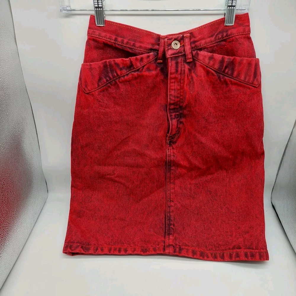 Pasta High Waist Red Black Jean Skirt Women Size 7 Y2K Length 21"