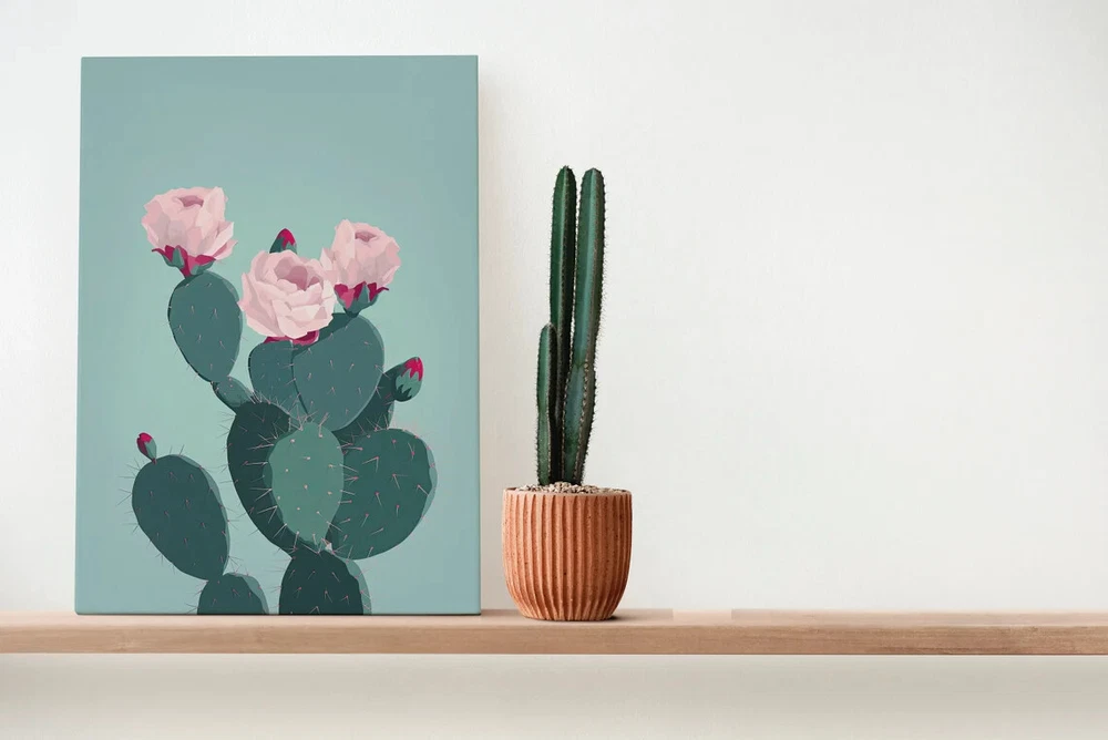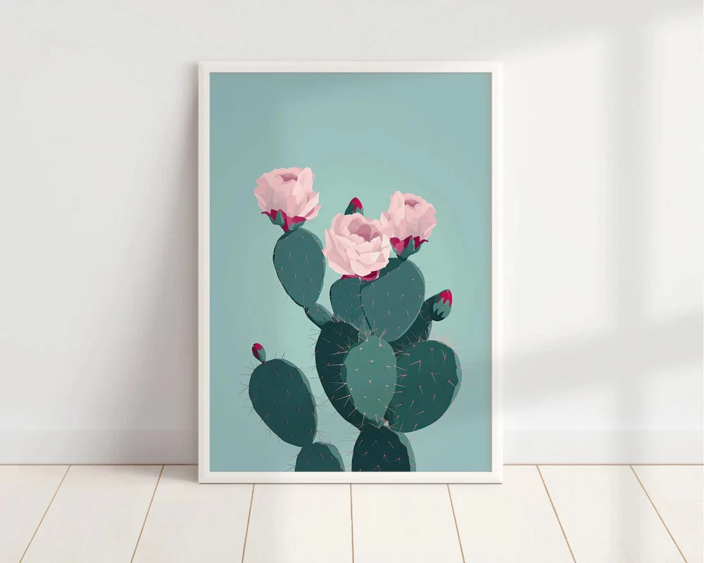 Pastel Blue Boho Cactus Wall Art Poster Premium Quality Choose your Size