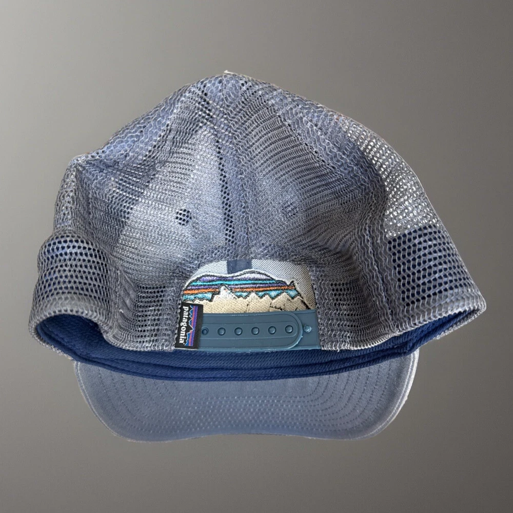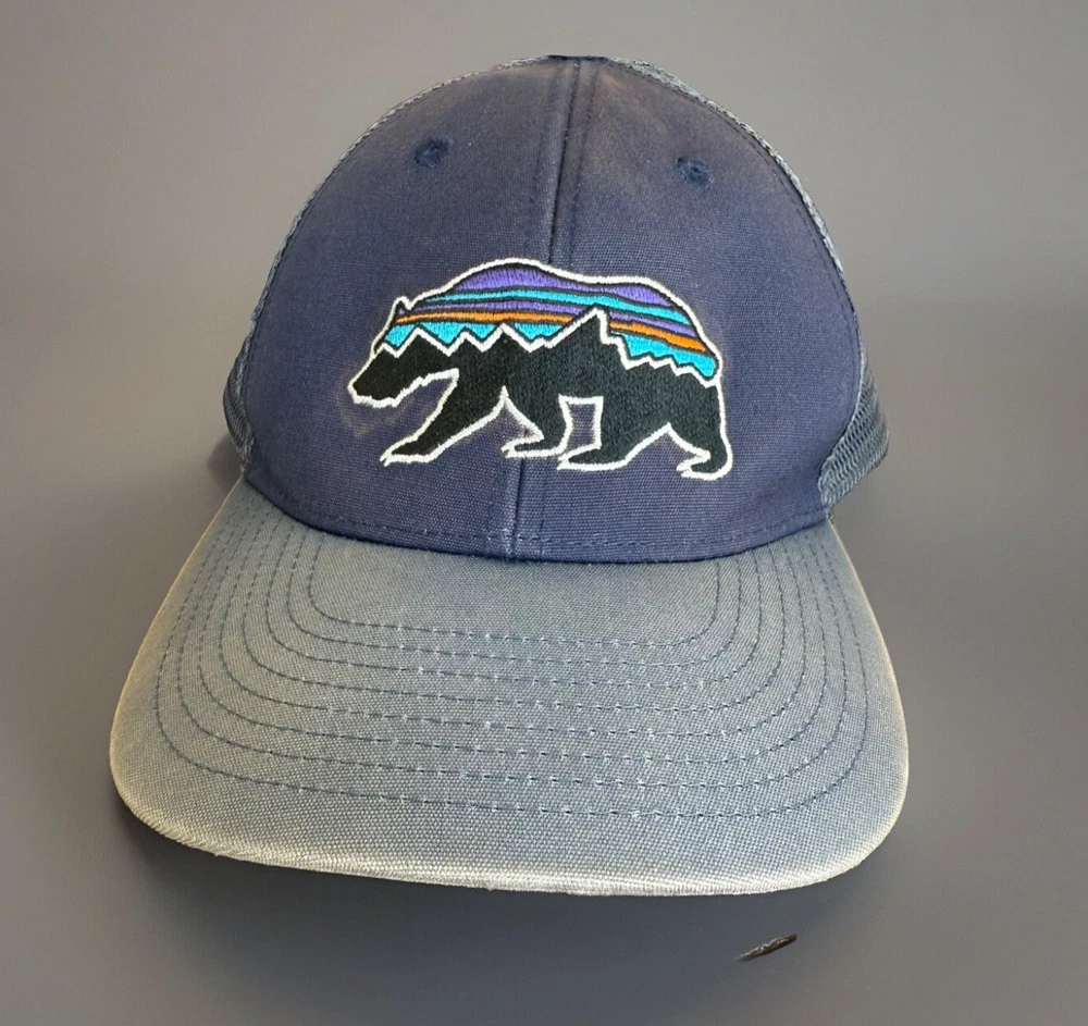 Patagonia Fitz Roy Trucker Hat Cap Youth Blue Gray Snap Back Bear Kids See photos for detailed condition