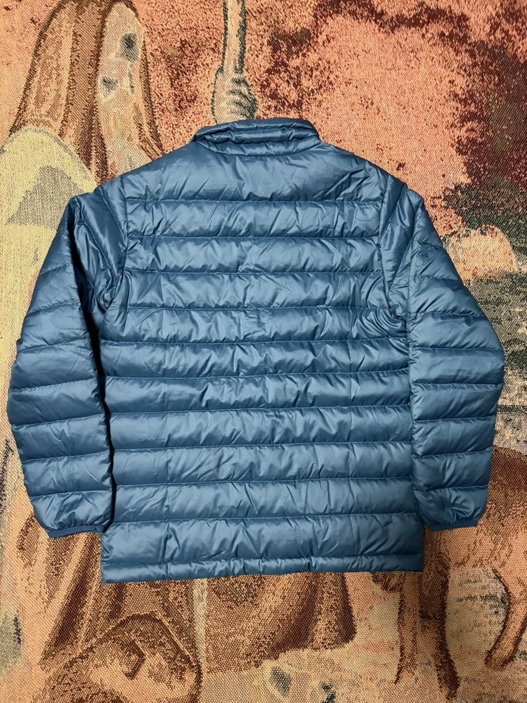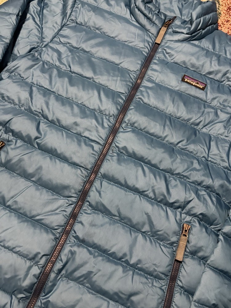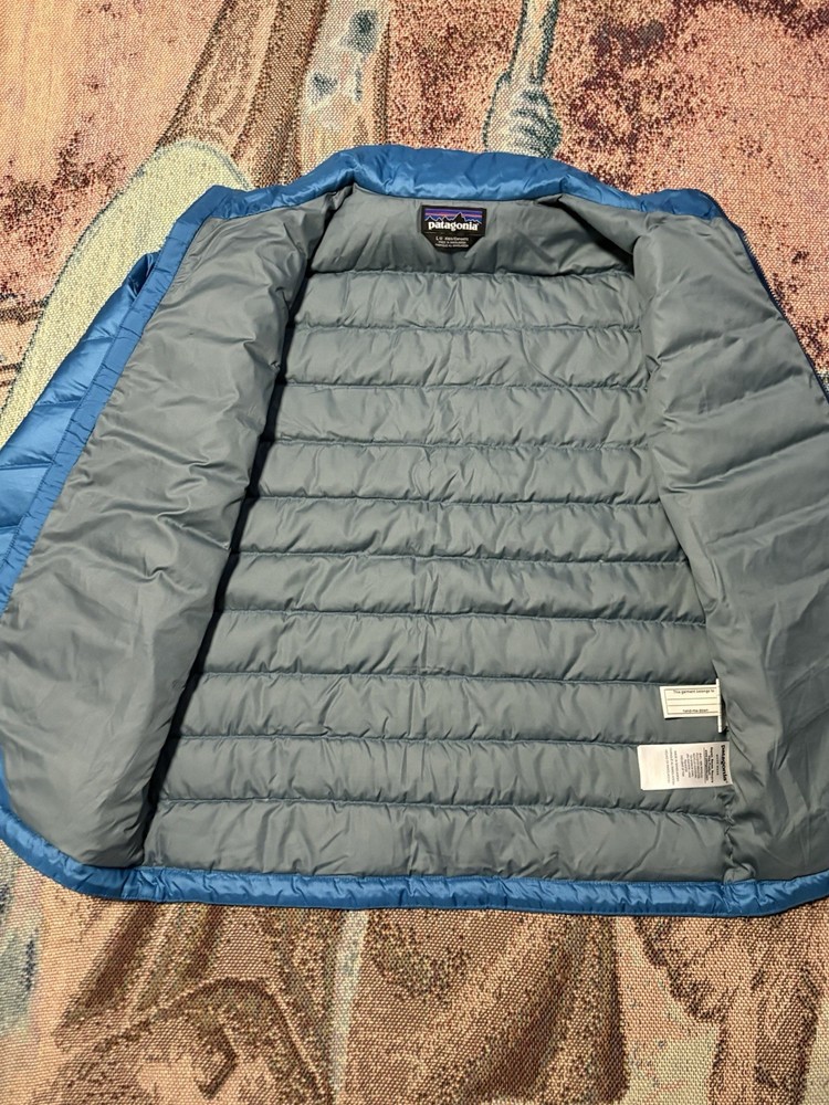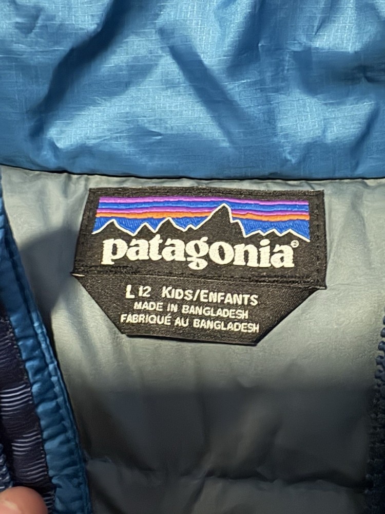 This Patagonia Down Blue Puffer Jacket is a stylish and practical choice for kids in size large (12). Made with polyester outer shell and lined with polyester, this jacket is machine washable for easy care. The solid blue color and puffer style make it perfect for casual occasions, especially in the winter season for outdoor activities like walking and hiking. With a full zip closure and zipper accents, this Patagonia jacket combines functionality with durability for a great addition to any teen's wardrobe.