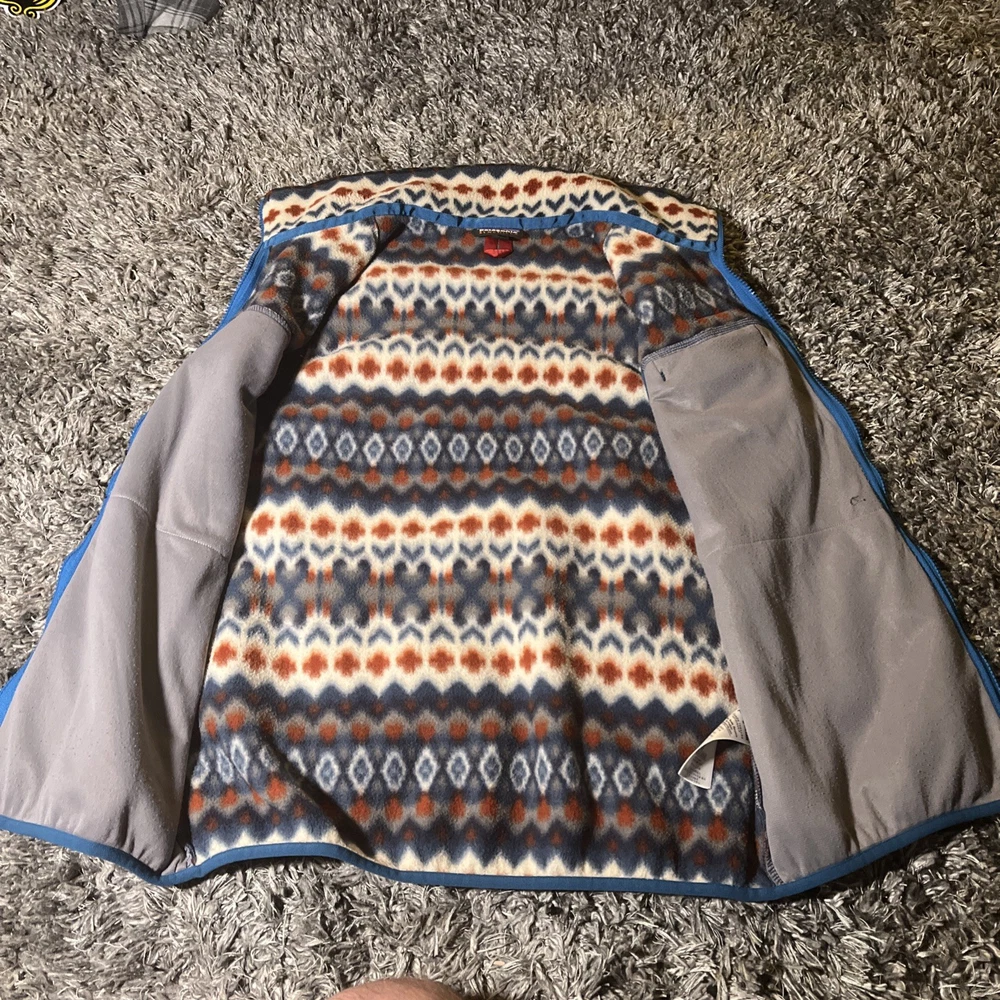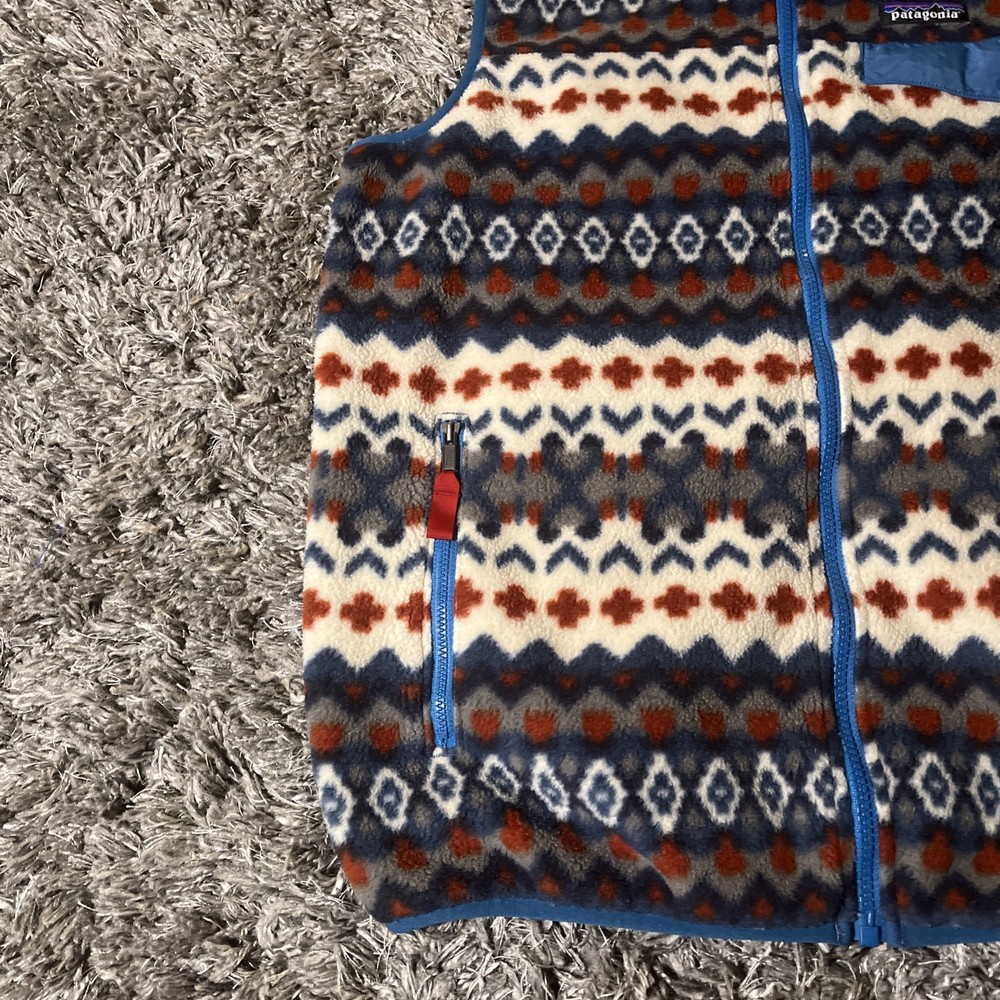 The Patagonia Lightweight Snap T Vest is a stylish and versatile outerwear piece for men. Made with polyester fleece fabric, this vest is perfect for travel, casual outings, or parties. The Aztec tribal geometric pattern adds a unique and stylish touch to the bomber jacket style. With a full zip closure and stand-up collar, this mid-length vest is both functional and fashionable. Machine washable and suitable for winter, fall, and spring seasons, this Patagonia vest is a must-have for outdoor enthusiasts and those who appreciate a southwestern flair in their wardrobe.