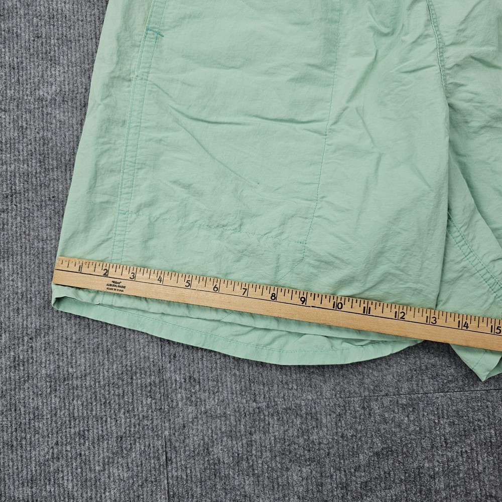 Brand: Patagonia Item: Mens lined swim shorts Tag size: Large (L) Color: Light/Mint Green Material: NetPlus recycled nylon shell Features: Elastic waistband, side hand pockets, rear flap pocket with button closure Features: Quick-dry fabric Branding: Patagonia mountain logo patch at left hem Notes: Classic Patagonia swim/training style with NetPlus shell; compare to a similar pair for best fit.
