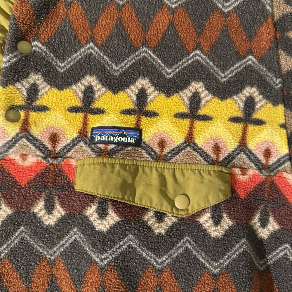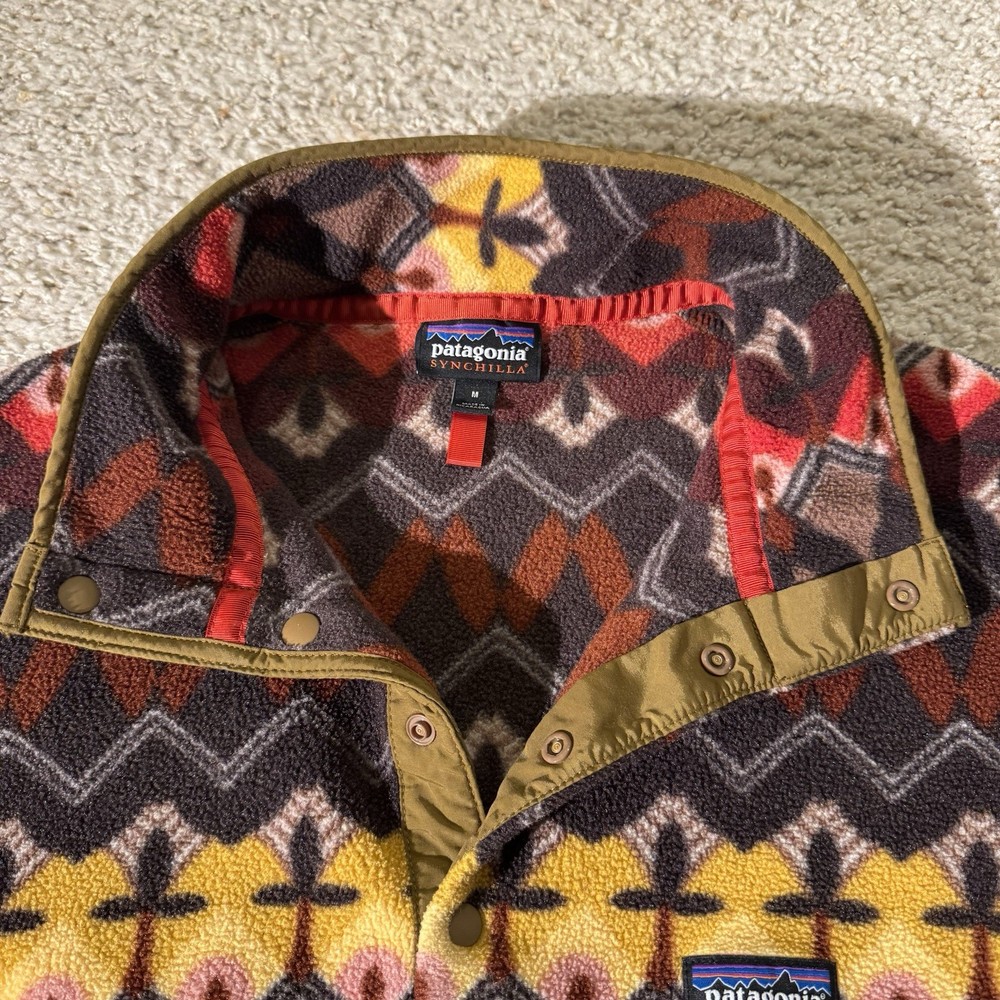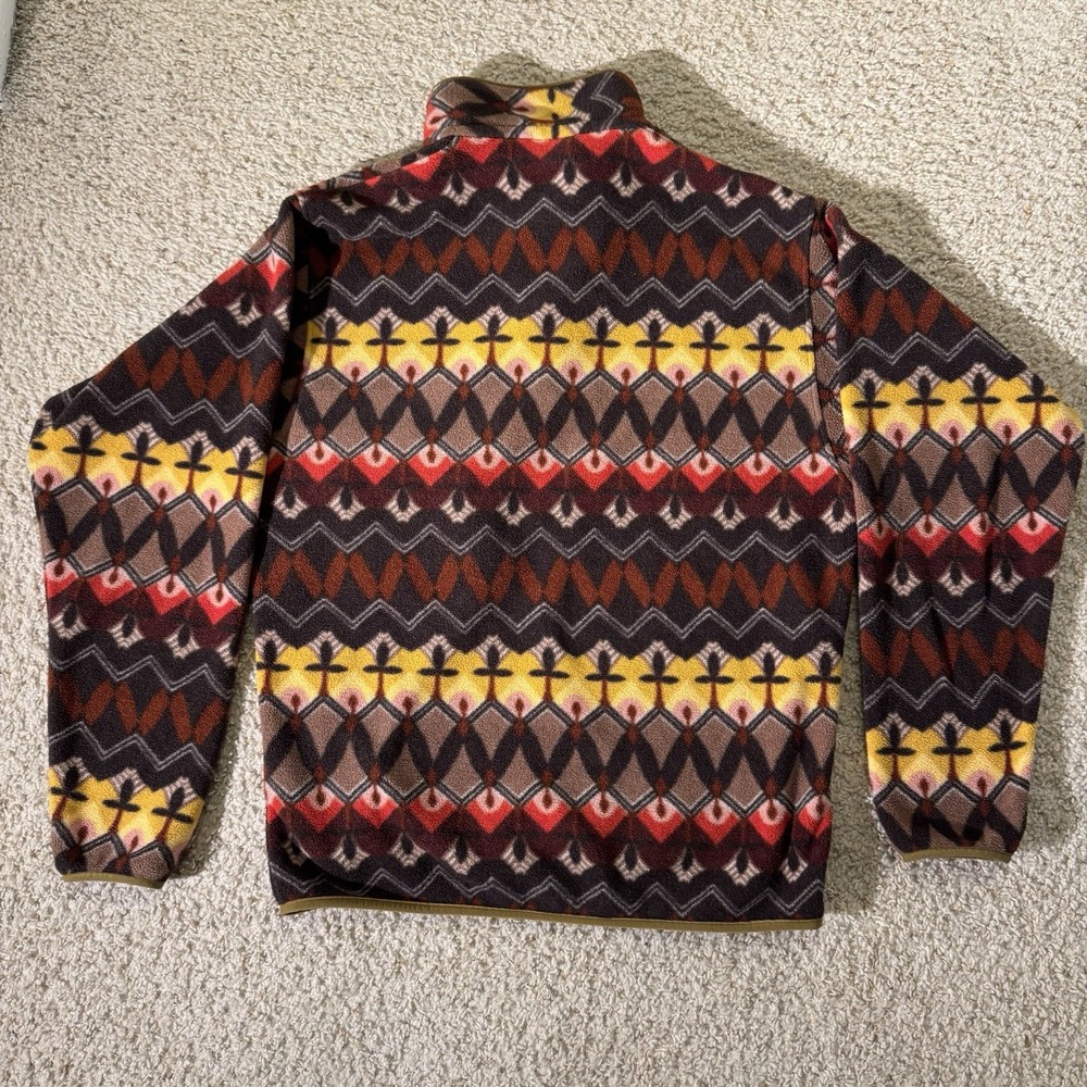 Wrap up in the timeless style of the Patagonia Synchilla Fleece Pullover Sweater, a versatile piece that's as suitable for a casual outing as it is for hiking adventures. Featuring a vibrant geometric pattern that makes it a standout addition to any wardrobe, this men’s medium-sized sweater offers a high neck and long sleeves for warmth and comfort. Worn but great condition!