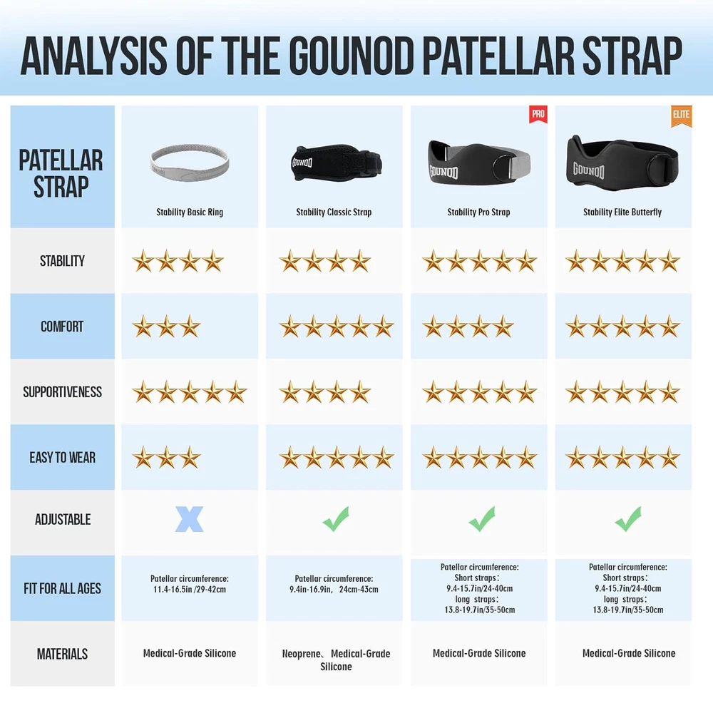 Patellar Tendon Support Strap 2 Pack,Knee Strap for Knee Pain Relief,Patella Band for Basketball, Jumpers Knee, Tendonitis, Running, Hiking, Soccer, Osgood Schlatter(Black) Description Color Black Specific Uses For Product knee Use for Legs Age Range (Description) Adult Size One Size Package Dimensions 7.64 x 7.52 x 0.75 inches; 4.8 ounces Effective Knee Pain Relief: The resilient silicone gel compression pad in the knee support holds the patella around the knee and absorbs shocks, providing excellent support and stability for the patellar tendon during daily workouts. The knee strap is designed for symptoms such as knee pain and stiffness, arthritis, meniscal and cartilage damage, patellar tendonitis and bursitis, torn ligaments and tendons, and even soft tissue and sport-related injuries Adjustable Patellar Band: Our patellar tendon support strap is fully adjustable, flexible, and easy to wear. You can adjust it according to your personal knee's curves to achieve the perfect fit. The adjustable knee brace eases your sizing worries away. A well-fitted patella band can provide better protection for the patella and reduce pressure High Quality and Durabl Fabric: GOUNOD patella knee braces are made from soft neoprene material and feature built-in silicone gel padding. Adapted with high-quality raw materials and standardized production techniques, they allow you to wear them without any discomfort, being both durable and easy to wash. Our knee braces provide ultimate comfort while stabilizing the knee Comfortable and Anti-slip Design: GOUNOD knee bands' fabric is chosen for its premium permeability and sweat absorption ability, preventing any wet or slippery feeling on the knee. It will securely stay in place and not slide suddenly when you exercise, allowing you to perform physical activities with ease Suitable for a variety of scenes: Such as basketball, training, hiking, soccer, fitness, cycling, and running, or up and down the stairs in daily walking. The compression knee brace is designed for sports that require frequent jumping and landing, and helps keep you away from potential knee injuries, enabling you to enjoy sports without discomfort Product description Unlock Pain-Free Movement with GOUNOD Patellar Tendon Support Strap! Imagine pushing your limits without knee pain holding you back. Whether you’re an athlete, a weekend warrior, or battling daily discomfort, the GOUNOD Knee Strap delivers targeted relief where you need it most. Engineered for active lifestyles, this isn’t just a knee band—it’s your key to confident movement. Why This Patella Tendon Knee Strap Works Smarter ✓ Precision Compression Technology: Our adjustable strap applies gentle, focused pressure to the patellar tendon, reducing strain during jumps, runs, and squats. ✓ Stay Secure, Move Freely: The non-slip silicone grip and breathable neoprene core ensure the strap stays in place during intense workouts or long walks—no constant readjusting! ✓ Instant Relief, Long-Term Support: Ideal for jumper’s knee, Osgood-Schlatter syndrome, or general tendonitis. Feel the difference from the first wear. Built for Real Life—Comfort Meets Durability ✔️ All-Day Comfort: Ultra-soft, skin-friendly materials prevent chafing, even during marathons or 10-hour work shifts. ✔️ One-Size Fits Most (28-52cm): The quick-release buckle and stretchable design make it effortless to adjust for perfect tension. ✔️ Your 24/7 Support Partner: From gym sessions and hiking trails to grocery runs and desk work—this knee band for pain relief adapts to your rhythm. Who Needs the GOUNOD Patellar Tendon Strap? → Athletes: Prevent "jumper’s knee" during basketball, volleyball, or HIIT. → Active Professionals: Nurses, construction workers, and walkers needing knee strap support. → Osgood-Schlatter Warriors: Our doctor-recommended design eases growth plate stress in teens. → Arthritis & Injury Recovery: A lightweight alternative to bulky knee braces. Why Thousands Choose Us Over Generic Knee Straps "Finally Stays Put!" – Unlike flimsy knee bands, our ergonomic contouring hugs your leg naturally. No More Guesswork – The tension control knob lets you customize support in seconds. Sweat-Warrior Approved – Moisture-wicking fabric fights odor and irritation. Ready to Reclaim Your Active Life? Don’t let knee pain sideline your goals. Click Add to Cart now and experience the GOUNOD difference—where movement means joy, not discomfort. Your journey to stronger, happier knees starts here! Reclaim Your Active Life Today Don’t let knee pain limit your potential. Click Add to Cart now to experience the GOUNOD difference—where movement meets joy. Your journey to stronger knees starts here.