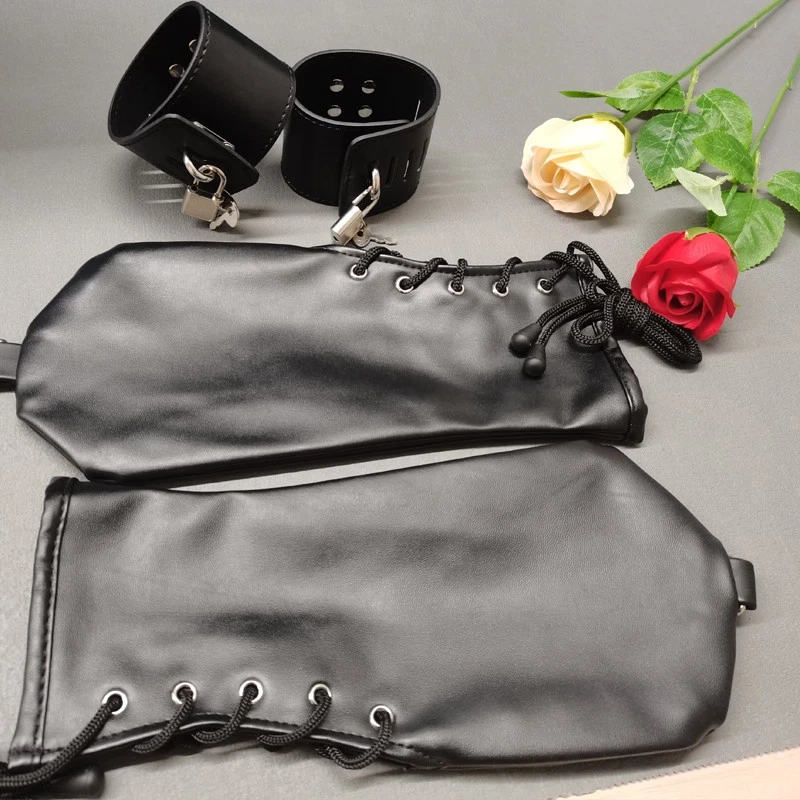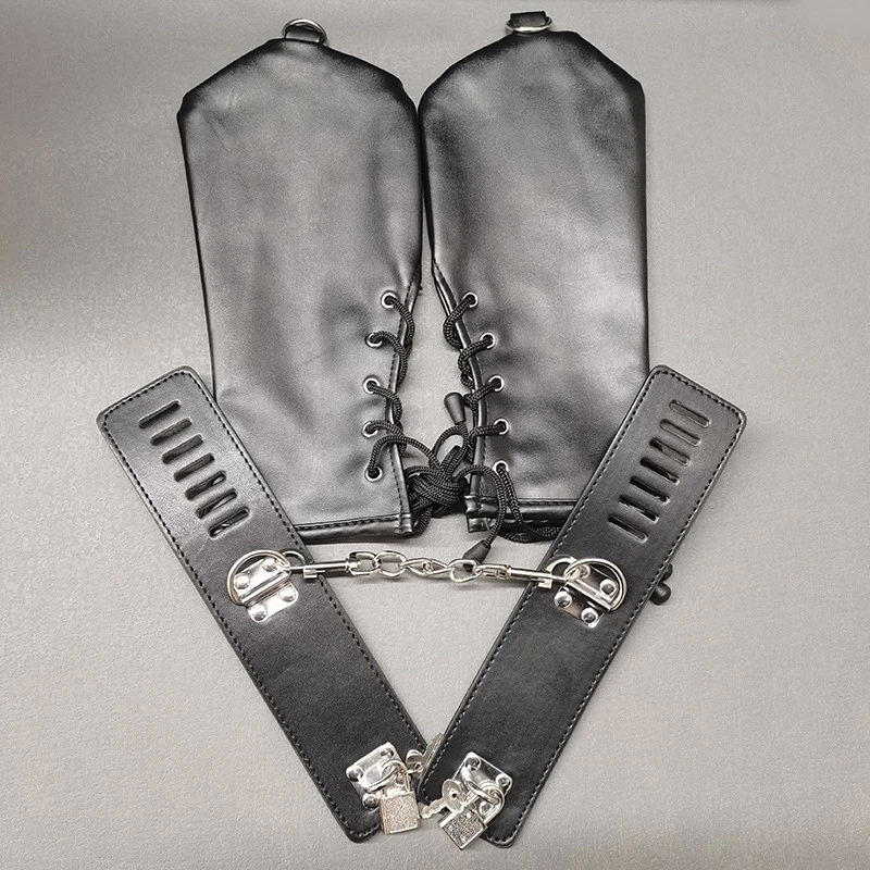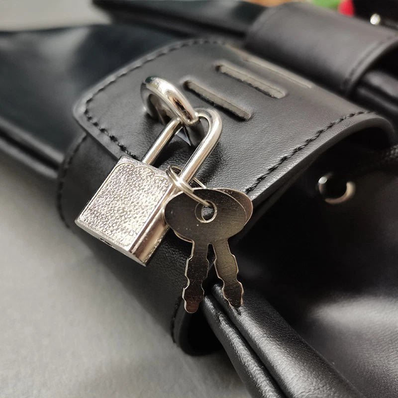 Feature: Condition:100% Brand New One Size for all Handcuff size: 24.5cm (L)* 5.5cm(W) Mitten Size: 27cm (L)* 13.5cm(W) Color: Black Material: Faux Leather Net Weight: 225g Package Included: one pair of cuffs as the picture with locks Description: This hand restraint features a pair of full hand glove and two wrist cuffs. The mittens are very soft and fully lined, with side lacing for a better fit. The wrist cuffs have one padlock with 2 keys for each lockable strap. Each mitten and wrist cuffs has D rings for rope or chains attachments. Free size, fits all hand sizes and max wrist size about 22cm.
