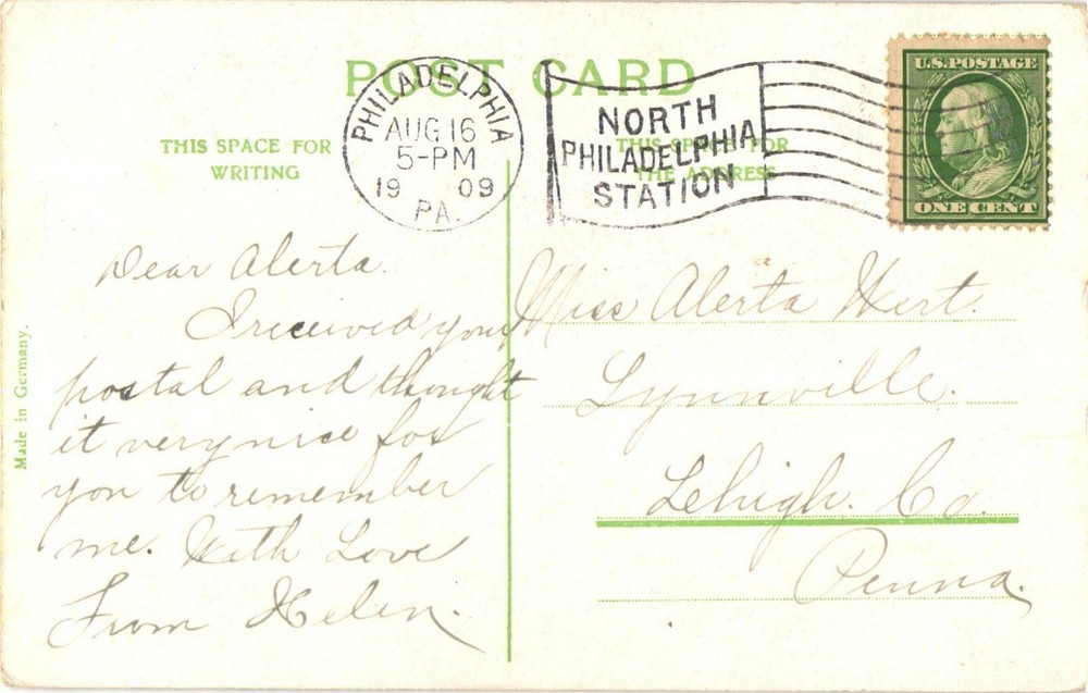The package was shipped promptly and arrived on time. I do have one suggestion: consider adding a piece of cardboard or something similar inside the envelope to prevent the postcard from bending. A “Do Not Bend” sticker or note on the envelope would also help. The postcard was exactly as described and definitely a good value.