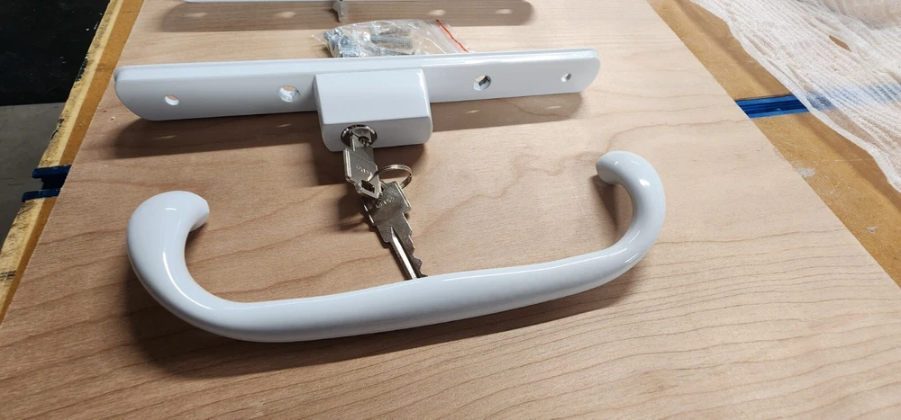 White Patio Door Handle Set with Keyed Handle Set. for Sliding Patio doors. NEW / White. This Patio Door Handle is the same one that Silverline installed on their doors.