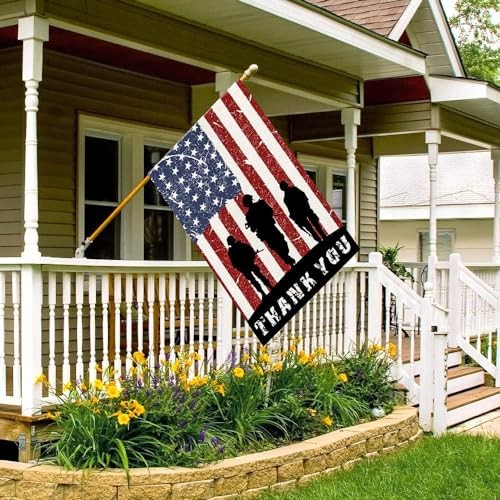 Return Policy Fast Delivery Trusted seller Patriotic American Soldier Thank You House Flag 28x40 Inch Burlap Double Sided 4th of July Independence Day Memorial Day Yard Outdoor Decor USA Flags DF454-28 Product Description PACKAGE :ONLY 1PC PATRIOTIC DAY HOUSE FLAG (flagpole is not included). house flag size (28 x 40"), sleeve hanger fits standard flagpole. DOUBLE SIDED: Design is double sided with the image printed and visible from both sides and text also reads correctly from both sides. PREMIUM QUALITY MATERIAL: Made of premium quality burlap looking machine washable Spun Polyester, which is weather resistant as well as UV / fade-resistant. High-strength double stitching ensures durability. Wide Application: Welcome guests to your home with this unique, seasonal flag. Perfect for any deck, patio, porch or veranda and make charming decorative statements for any backyard, lawn or garden. RISK FREE GUARANTEE: Each flag brightly colored, fade resistant, extra soft and extra durable for lasting enjoyment. AND we offer 60 days money-back warranty and 24/7 customer support give you the best shopping experience ever. Shipping Returns Payment Shipping Shipping is FREE to all addresses other than APO/PO boxes in the lower 48 states. All our stock ships from US-based warehouses. Shipped via USPS or UPS (depending on location and package weight) Unless stated otherwise, all orders will ship within 24-72 hours of your payment being processed. Check our feedback to see the great reviews of FAST shipping we offer. Returns Seller does not accept returns Payment We currently accept payment via eBay managed payments only. Once payment is cleared, we will dispatch your shipment within 1-3 business days. Please refer to the "Shipping" tab for more information regarding shipping speed to your destination.