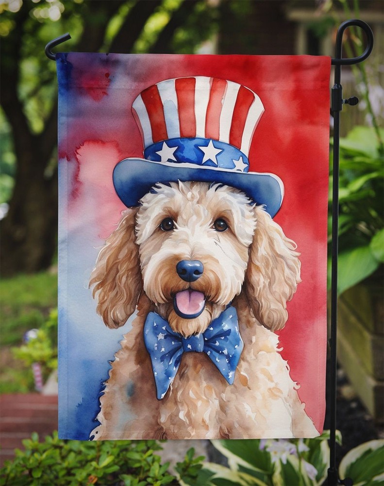Highlights Vibrant Outdoor Decor: Elevate your garden, patio, or yard with Caroline's Treasures Garden Flag, featuring stunning artwork that adds a pop of color and personality to your outdoor space. Premium Quality and Durability: Made from two pieces of thick, double-sided polyester fabric, this 2-ply garden flag is water-resistant, weatherproof, and designed to withstand wind, rain, and snow, ensuring long-lasting beauty. Readable on Both Sides: With correctly readable words on both sides, this garden flag offers a delightful visual experience from any angle, making it a captivating focal point in your outdoor decor. Made in the USA: Proudly crafted in the USA, Caroline's Treasures Garden Flag is a symbol of exceptional quality and craftsmanship. Enhance your outdoor setting with this high-quality flag and enjoy its vibrant charm for years to come. Great gifts: Great hostess gifts, a housewarmning gift for that new home or a wedding gift for that new couple. All of our products feature artwork from one of our artists or desingers. A great gift for your dog walker, groomer, or pet sitter. Goldendoodle gifts,Goldendoodle collectibles Specification Brand:Caroline's Treasures Details Garden Flag featuring breed specific Goldendoodle artwork. Enhance the beauty of your garden, patio, or yard with Caroline's Treasures Decorative Garden Flag, proudly made in the USA. Crafted from two pieces of thick, double-sided polyester fabric, this 2-ply garden flag is designed to withstand various weather conditions, making it water-resistant and weatherproof. Featuring correctly readable words on both sides, this garden flag offers a delightful visual experience from any angle. With its heavier weight, it stands out among other garden flags, ensuring stability and durability even in wind, rain, and snow. Measuring approximately 11 1/4 inches by 15 1/2 inches, this flag allows you to personalize your outdoor decor. It comes with a 1 1/2-inch sleeve sewn in, allowing easy attachment to any standard garden flag stand or garden size porch hanger (sold separately). Make a statement in your outdoor space with Caroline's Treasures Decorative Garden Flag, a vibrant and high-quality flag that adds color and personality to your surroundings. Proudly made in the USA, it's a symbol of quality craftsmanship and attention to detail.