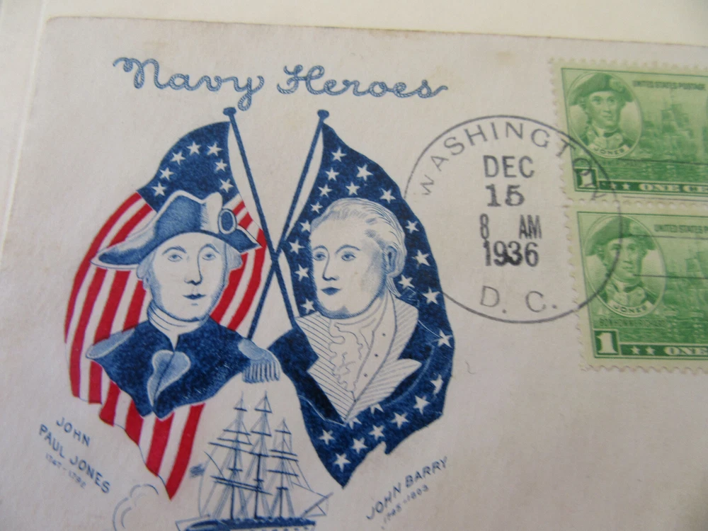 Navy Heroes Patriotic 1c Stamp Cachet Fdc Sc#790 [CV $8+] Grimsland Cachet Cover Issued December 15, 1937. ~~~FREE SHIPPING USA~~~