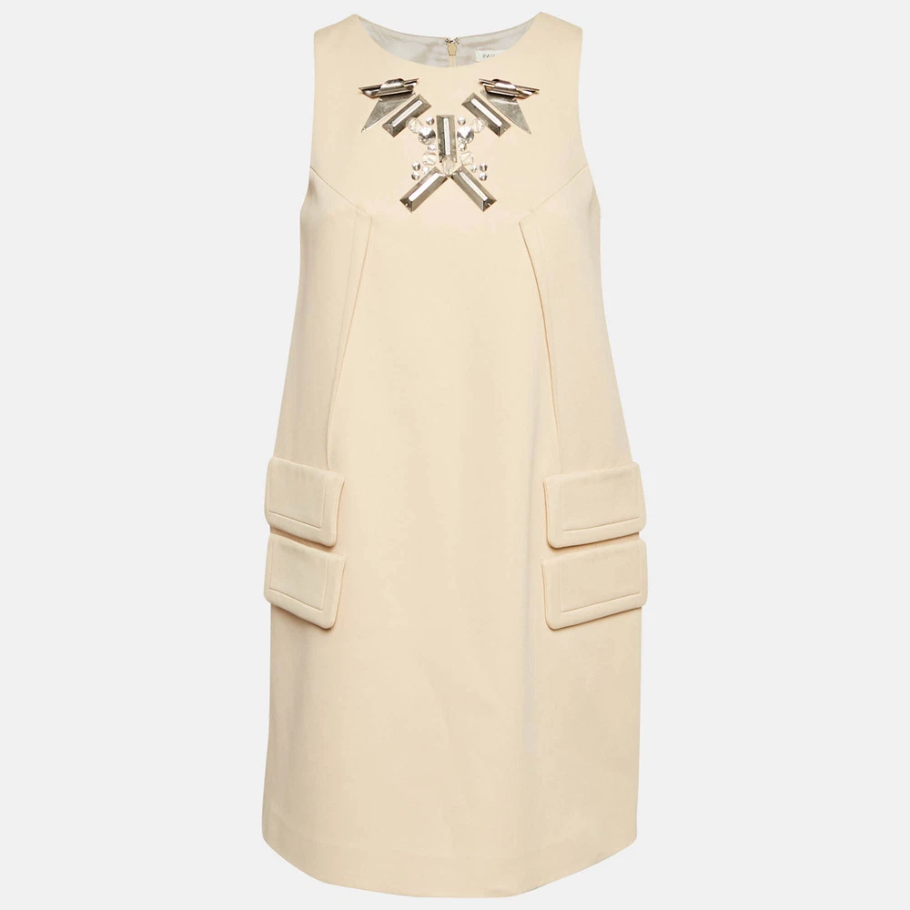 Exhibit a stylish look by wearing this beautiful designer dress. Tailored using fine fabric, this dress has a chic silhouette for a framing fit. Style the creation with chic accessories and pumps.Certified by The Luxury Closet - This item has gone through a detailed authentication process overseen by our experts. We offer a lifetime guarantee of authenticity on all our items. Import duties, taxes and charges are not included in the item price. These charges are the buyers responsibility. Please check with your country’s customs office to determine what these additional cost will be prior to buying. Our eBay Store About Us Contact Us Add to Favorite Sellers Paule Ka Cream Metal Embellished Stretch Crepe Mini Shift Dress S $403.7 Exhibit a stylish look by wearing this beautiful designer dress. Tailored using fine fabric, this dress has a chic silhouette for a framing fit. Style the creation with chic accessories and pumps. Product Details Brand Color Cream Dimensions Material Stretch Crepe Size S Outsole Width Outsole Length Heel Height Includes The Luxury Closet Packaging Certified by The Luxury Closet This item has gone through a detailed authentication process overseen by our experts. We offer a lifetime guarantee of authenticity on all our items. How We Check The in-house team of experts at The Luxury Closet is highly trained to verify the authenticity and the condition of the luxury products. They ensure that only 100% authentic items are put on sale.The evaluation process is unique with its own mix of assessment criteria and differs according to the category. Each item is evaluated based on the following combination of hallmarks, hardware, stitching, symmetry, material, craftsmanship, stamping, codes, hologram stickers, and packaging. Our authenticators also check if the items have been modified or amended (e.g., aftermarket diamonds, replaced batteries, repaired bags, etc.) International Buyers Import duties, taxes and charges are not included in the item price. These charges are the buyers responsibility. Please check with your country’s customs office to determine what these additional cost will be prior to buying.