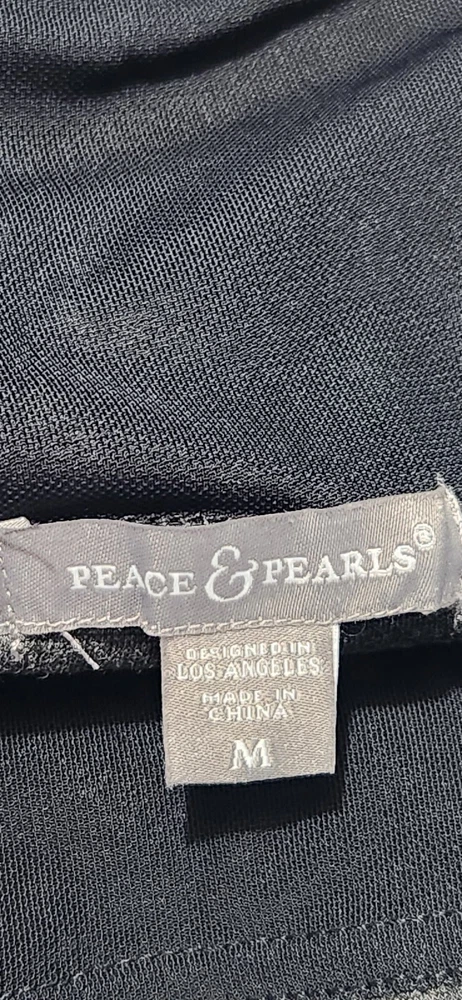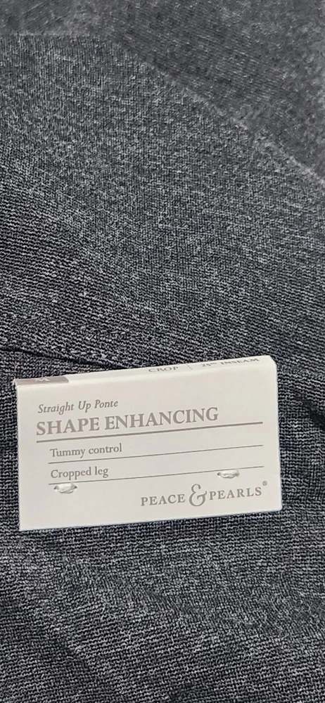 Peace And Pearls Leggin Women Size Medium Color Gray charcoal Tummy Control Cropped Leg Waist measures 15" and stretches to 18"