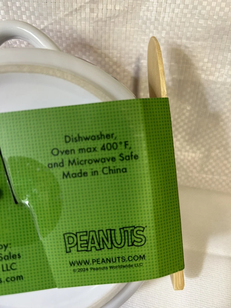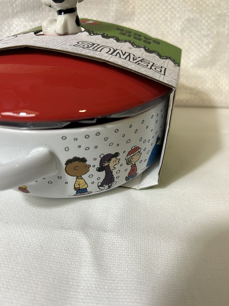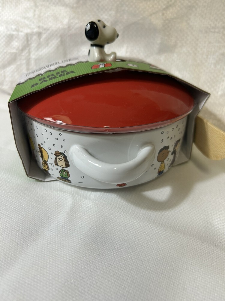Material: Ceramic Year Manufactured: 2024 Brand: Peanuts Color: Multicolor Type: Brie Baker Theme: Christmas Franchise: Peanuts Character: Snoopy Country/Region of Manufacture: China