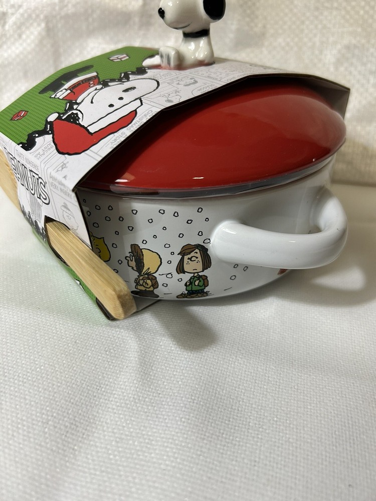 Peanuts Charlie Brown & Gang Christmas Brie Baker W/Wooden Spoon Snoopy Lid