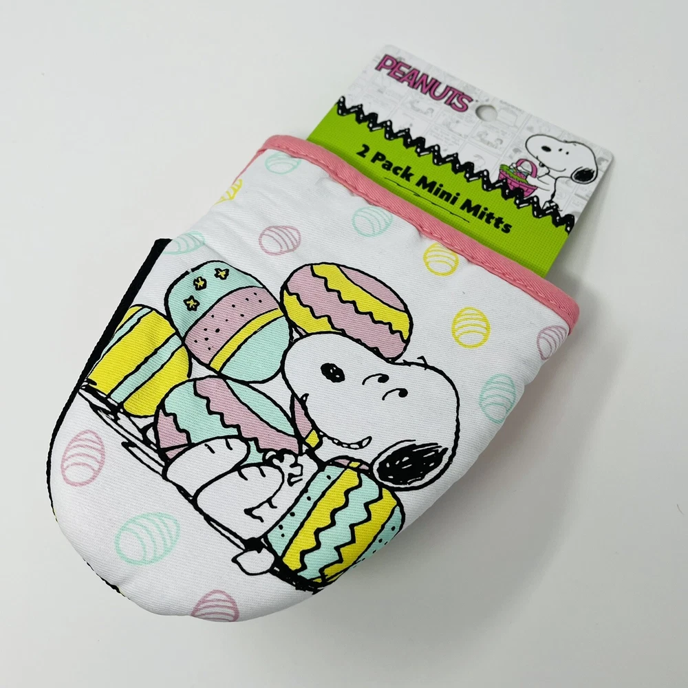 Peanuts Snoopy 2 Pack Mini Oven Mitts Easter Eggs Pink Green Yellow Springtime