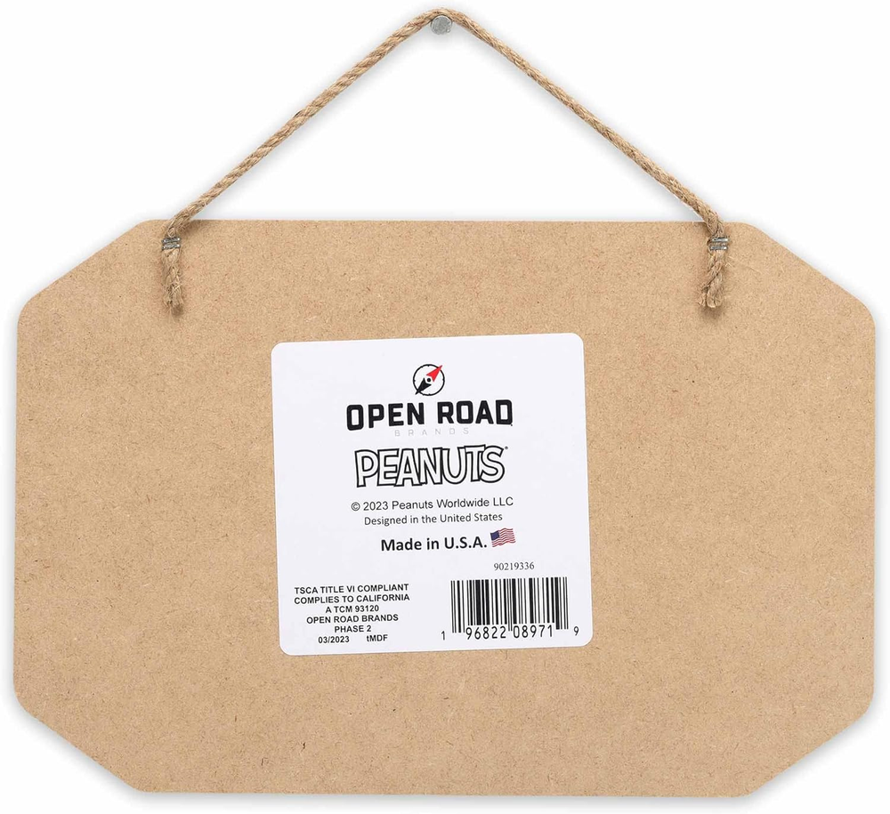 Store New Arrivals Add to Favorite View Feedback Contact Peanuts Snoopy Love More Hanging Wood Wall Decor - Cute Snoopy and Woodstock Sign for Home Decorating Description Item model number 90219336 Style Vintage Mounting Type Rope Hanger Batteries required No Product Dimensions 8.25"L x 5.5"W Material Wood Shape Rectangular Item Weight 4 ounces Color Cream Theme Spring Pre-printed Love More Recommended Uses For Product Home Import Made in the USA Number of pieces 1 Peanuts licensed product: At the end of the day, love is the most valuable gift we can give one another. Let Snoopy and Woodstock remind you of that sentiment day after day with help from this whimsical sign! Fun Vintage Sign: Snoopy is depicted hugging his loyal pal Woodstock alongside the simple, but impactful phrase, "Love More." This sweet decor serves as a lighthearted reminder in any space. Material: This eye-catching decor is made of lightweight, yet durable MDF, and it features a rope for quick and easy wall display. Made in the USA. Places to Use: Whether you use it to bring charm and personality to your front door, entryway, or living room, this sign is sure to make a statement. Size: 8.25" W X 5.5" H X 0.25" D Product description Bring the Joy of Peanuts Home Officially Licensed Peanuts Wall Art & Decor Hanging Signs Wooden hanging wall signs with fun and cheerful sayings that will add character to any space. Gallery Wrapped Canvas Make a bold statement with a fun gallery wrapped canvas art piece featuring your favorite Peanuts characters. Halloween Decor Celebrate the Fall season with Snoopy and the gang! Decorate your space with this fun wall decor. Christmas Decor Decorate for the holidays with festive signs and fun wall decor. Peanuts Home Decor: Add Fun and Flair to Your Home Compare Top Peanuts Wall Decor Add to Cart Add to Cart Add to Cart Add to Cart Add to Cart Add to Cart Add to Cart Customer Reviews 4.8 out of 5 stars 864 4.9 out of 5 stars 67 4.8 out of 5 stars 864 4.6 out of 5 stars 234 4.5 out of 5 stars 102 4.8 out of 5 stars 292 4.8 out of 5 stars 864 Price $17.99 $ 17 . 99 $31.99 $ 31 . 99 $13.99 $ 13 . 99 $9.99 $ 9 . 99 $13.99 $ 13 . 99 $13.99 $ 13 . 99 $13.99 $ 13 . 99 Size Medium Medium Small Small Small Small Small Measurements 11.25" W X 11.25" H X 0.25" D 12" W X 12" H X 1" D 8.25" W X 5.5" H X 0.25" D 6" W X 8" H X 0.02" D 8.25" W X 5.5" H X 0.25" D 8.25" W X 5.5" H X 0.25" D 8.25" W X 5.5" H X 0.25" D Material Wood Canvas Wood Adhesive Decal Wood Wood Wood Officially Licensed ✔ ✔ ✔ ✔ ✔ ✔ ✔ Made in USA ✔ ✔ ✔ ✔ ✔ ✔ ✔ Crafted with Pride in the USA At Open Road Brands we're passionate about American craftsmanship. Our products are meticulously crafted in Wichita, Kansas. Choosing us means supporting local jobs, getting superior quality, and reducing environmental impact. Every piece is made in the heartland and embodies our American story. "Made in the USA" isn't just a label; it's a symbol of quality, pride, and a brighter American future. Join us in celebrating domestic manufacturing and experience excellence that's uniquely American. ABOUT US We offer the best prices around on high quality products. Our E-store includes media such as books, movies, music and games while offering electronics, toys, sporting apparel, clothing, tools, general home, garden items and more. SHIPPING We are always working hard to ensure your package arrives as soon as possible. Please understand that some factors like weather, high postal traffic, and the performance of shipping companies are outside of our control. We offer free shipping to the lower 48 states and ship within 2 business days of payment, usually sooner. We do not accept P.O. Boxes. Please provide a physical address. RETURNS We offer a 30-Day Return Policy on items which you are not completely satisfied with. You have the option for a full-refund or an exchange of the item. No returns are available on items shipped outside of the USA. PAYMENT We accept PayPal. CONTACT US This page content is yet to come Please ad us to your favorite seller and visit again later Thank You CUSTOMER SATISFACTION We try our very best to make sure every customer is completely satisfied. If there's a problem, message us! We're happy to help.