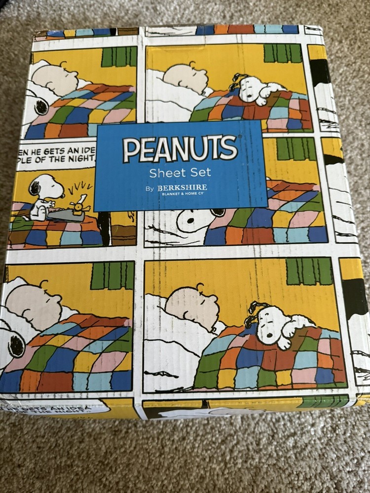 This Queen Size Peanuts® Sheet Set features a charming Snoopy print, perfect for adding a touch of whimsy to any bedroom. Made by Berkshire Blanket, known for quality products, this 4-piece set includes a fitted sheet, flat sheet, and two pillowcases. The soft material ensures a comfortable night's sleep while showcasing your love for the Peanuts character family. The set weighs 2.65 pounds, making it easy to manage and maintain in your home. Perfect for Peanuts fans looking to bring a bit of playful character into their bedroom decor.