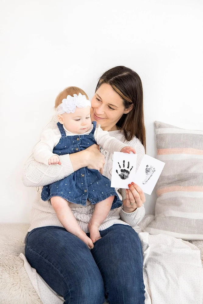 Pearhead Newborn Baby Handprint and Footprint Kit - No Mess 1-Pack, Black Product Details Product Dimensions: 4.75 x 0.06 x 3.25 inches Item model number: 00007 Is Discontinued By Manufacturer: No Target gender: Unisex Maximum weight recommendation: 100 Pounds Material Type: Stainless Steel Material Composition: Paper and Ink Additional product features: Clean-Touch, No Mess, Non-Toxic, baby-safe, zero-contact Number Of Items: 1 Style: Black Clean Touch Ink Pad Batteries required: No Item Weight: 1.6 ounces Baby Ink Pad Kit: Grab Pearhead’s Black Clean-Touch Ink Pad Kit for a completely mess-free experience. Includes 1 baby ink pad and 2 impression cards, perfect for capturing baby’s handprints and footprints. 100% Baby Safe: The zero ink contact design ensures ink never touches your baby’s skin. Pearhead’s mess-free magic ink pad is made with certified, premium non-toxic black ink for a clean, worry-free way to preserve precious baby prints for baby girl or baby boy. Easy To Use: Just place the ink pad face down on the included art cards or any paper or card, then press your little one’s hand or foot onto the clean side. It’s quick, easy, and completely stress-free imprinting method to create detailed stamps. Must-Have Keepsake: After letting the non-toxic ink dry for 1-2 days, you’ll have a beautiful baby keepsake to display or gift to loved ones. Add the completed print keepsake to baby memory book journals, scrapbooks, and more keepsake projects. Perfect for Tiny Prints: Each ink pad window measures 2.5" x 3.5”, the ideal size for newborns. The high-quality ink film ensures every detail of your baby's prints without any ink touching their skin. Safe, simple, and quick! Capture and cherish your little ones prints forever with Pearhead’s Clean-Touch Ink Pad. This ink pad achieves a highly detailed black print of your little one’s hand or foot without ink ever getting on baby’s skin! Absolutely no mess! To create an impression, make sure the ink is facing down on the included white card and press your baby’s hand or foot onto the clean-touch ink pad. Your baby’s tiny print will be left on the card without any ink on baby! Let the ink pad dry for 1-2 days before displaying. This set includes 1 clean-touch ink pad and 2 impression cards in case you need to redo the print. Each ink pad has a two-time use maximum and is for newborns only. For Newborn Size Only; Ink pads will accommodate hand/feet up to 2.25" x 3.5" . Now you will always be able to remember how little your baby’s piggies were and cherish them forever with Pearhead’s clean-touch ink pad. Product dimensions: 3.25" W x 4.75"H x .06" D. At Pearhead, we aim to create genuine, quality products to celebrate your special moments in life. We are a family of designers, marketers, and trendsetters bringing products to life that will bring a smile to your face. From concept and design to production and customer service, the Pearhead team works together seamlessly every step of the way. Whether your baby is celebrating their first year of life, you are announcing your pregnancy, or your pup is celebrating his first holiday season, Pearhead is here to share your moments in style.